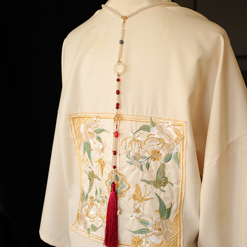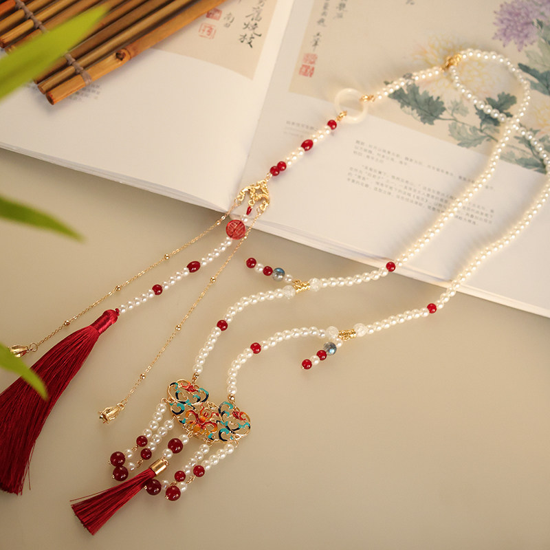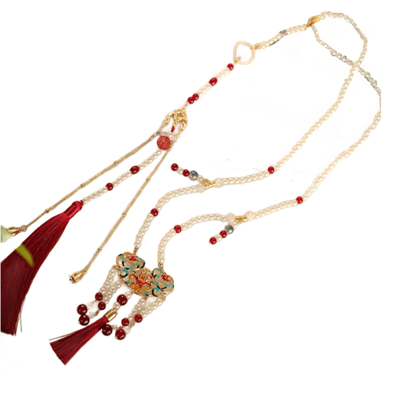 古风新款汉服马面裙配饰软璎珞带长背云红色系古装百搭国潮项链