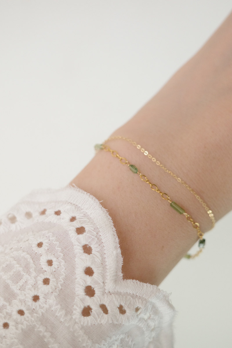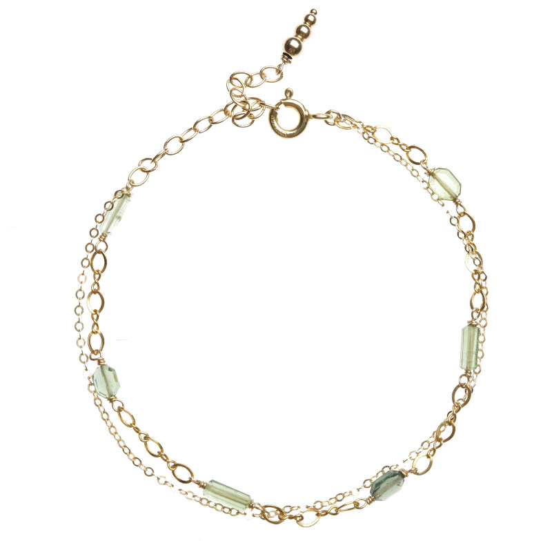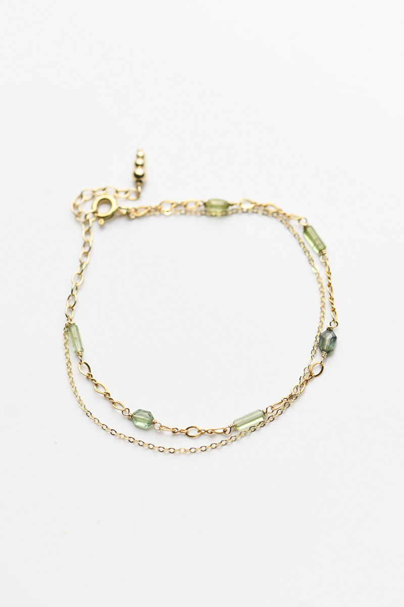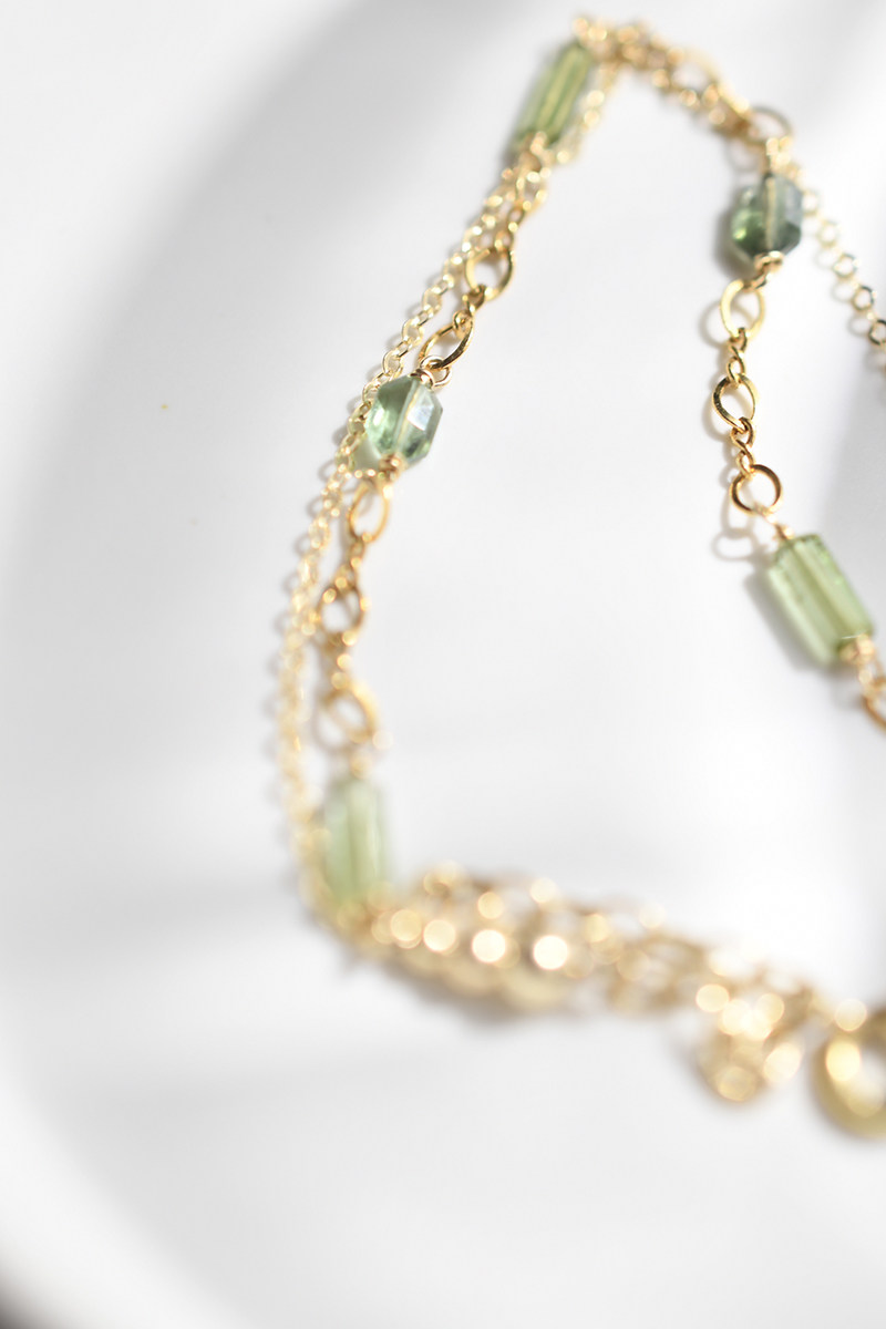 10月诞生石天然绿碧玺美国14K包金招财优雅复古原创双层闪耀手链