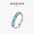 s925纯银小众设计合成绿松石简约精致时尚指环女欧美戒指饰品