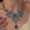 秋冬新款超闪蓝色水滴锆石项链套装女高级感晚宴礼服配饰锁骨链潮
