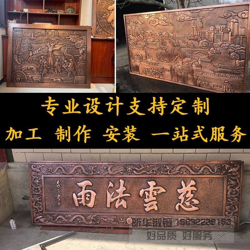 定制纯铜浮雕手工锻铜浮雕壁画铜板雕刻福字牌匾紫铜黄铜浮雕画