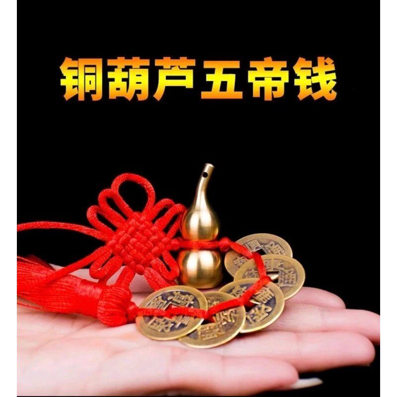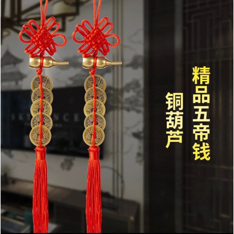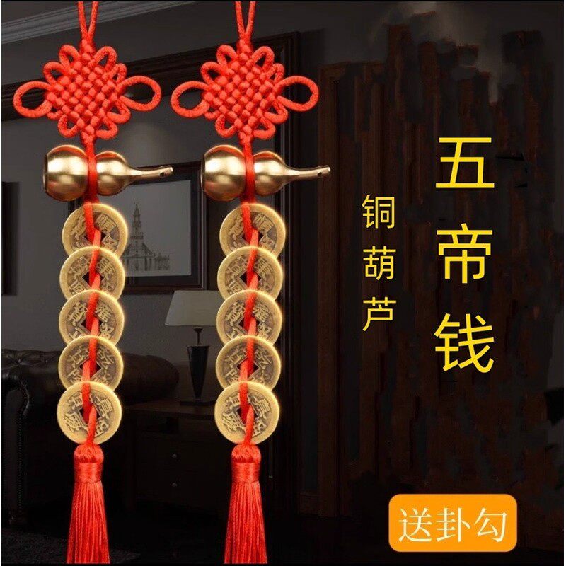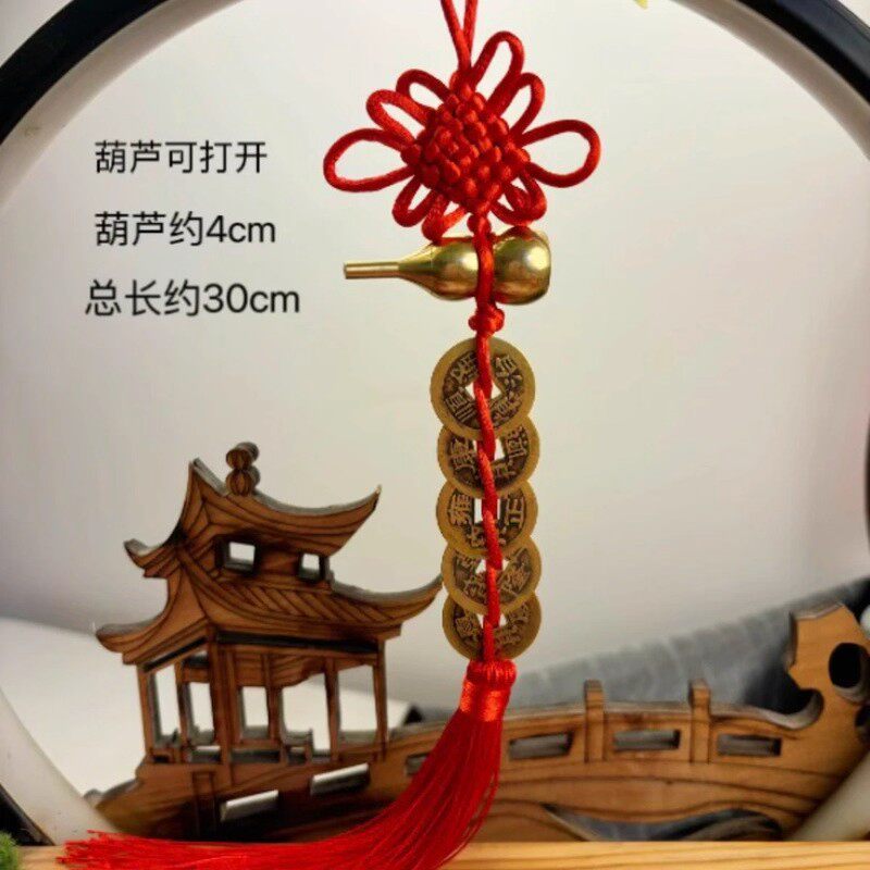 精品黄铜葫芦五帝钱红色手工编织吉祥结居家门挂件吉祥中国结挂件
