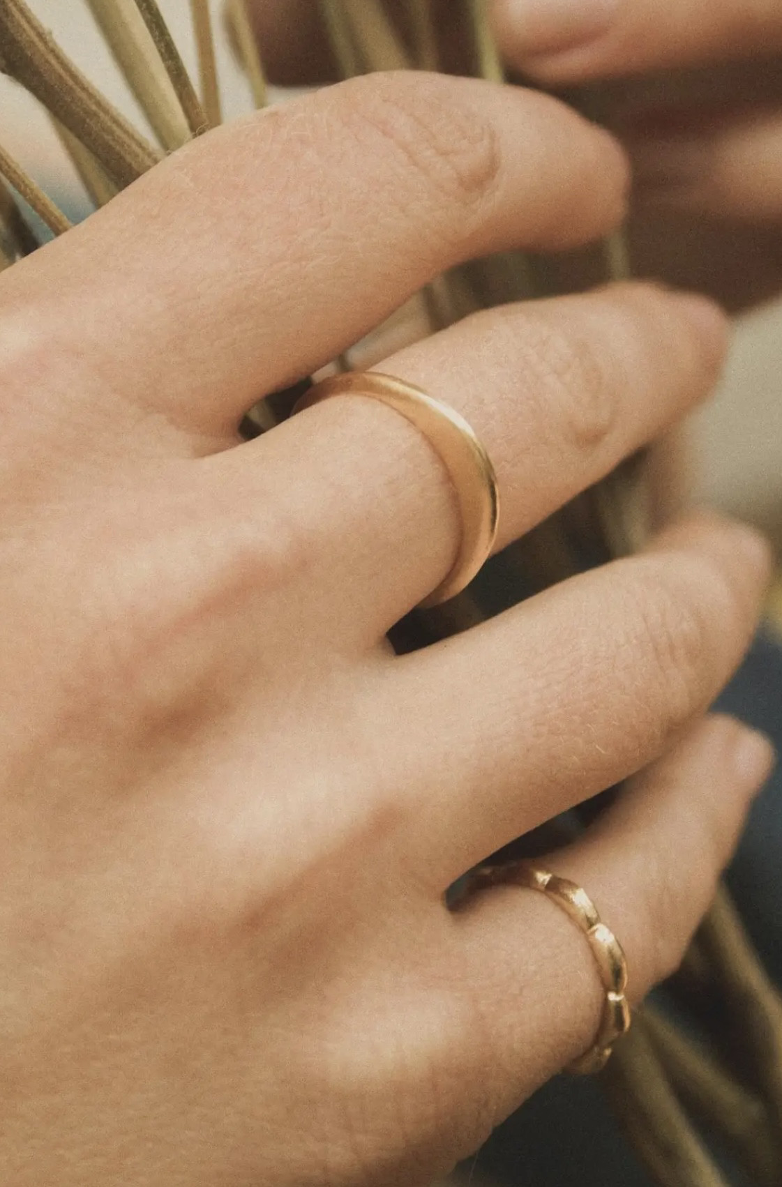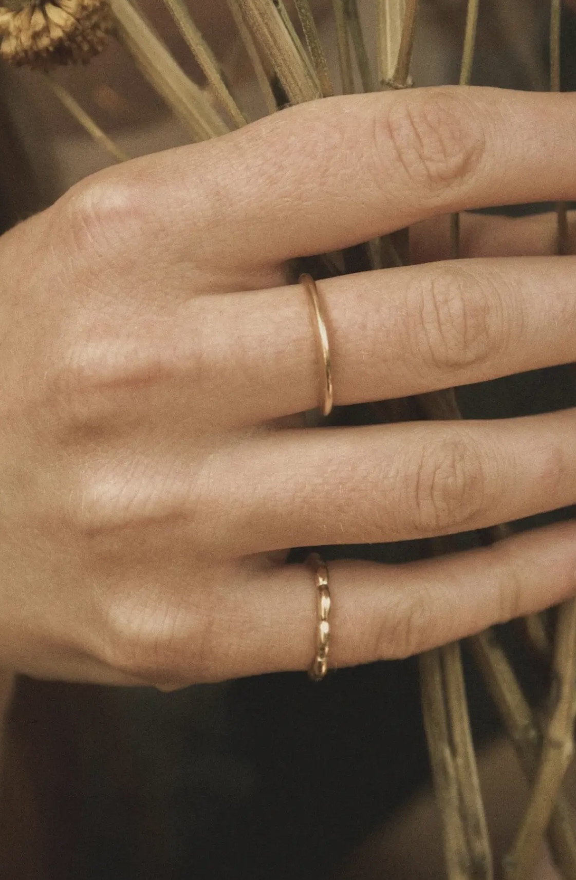 MINIBLOOM 纯银花环细圈戒指金银两色百搭戒指尾戒
