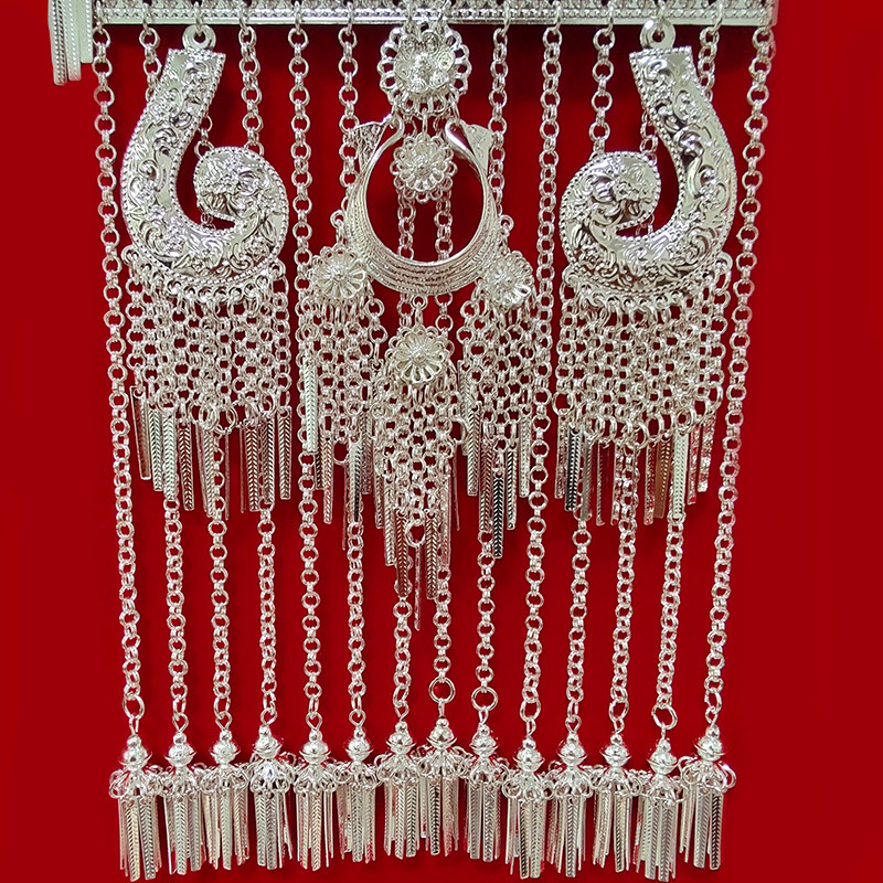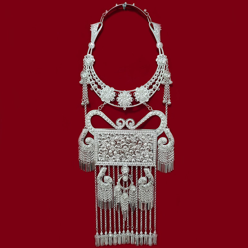 新款少数民族苗银项圈挂脖 苗族长流苏项链民族服装配饰舞台演出