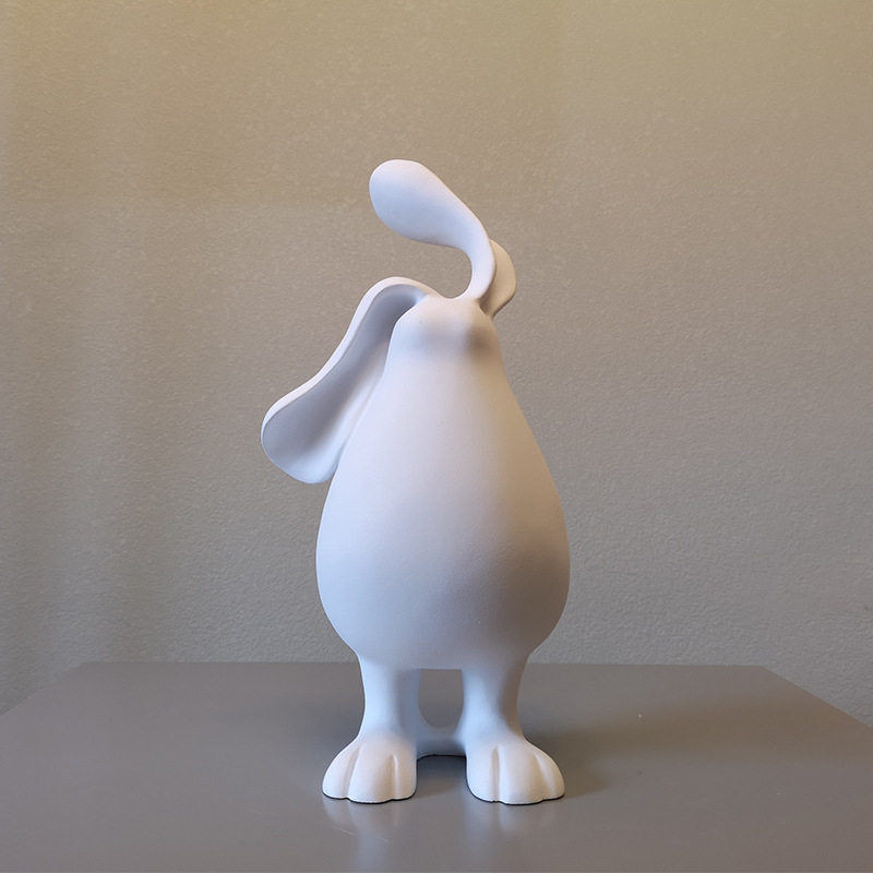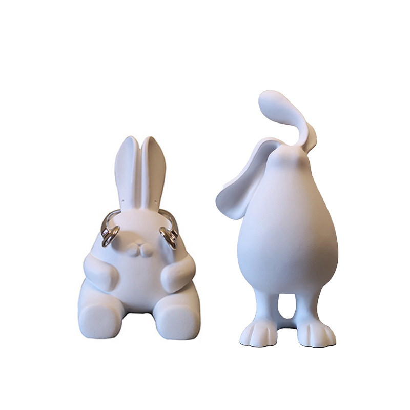 现代极简北欧卡通白色戴耳机兔子饰品儿童房卧室样板房售楼处摆件