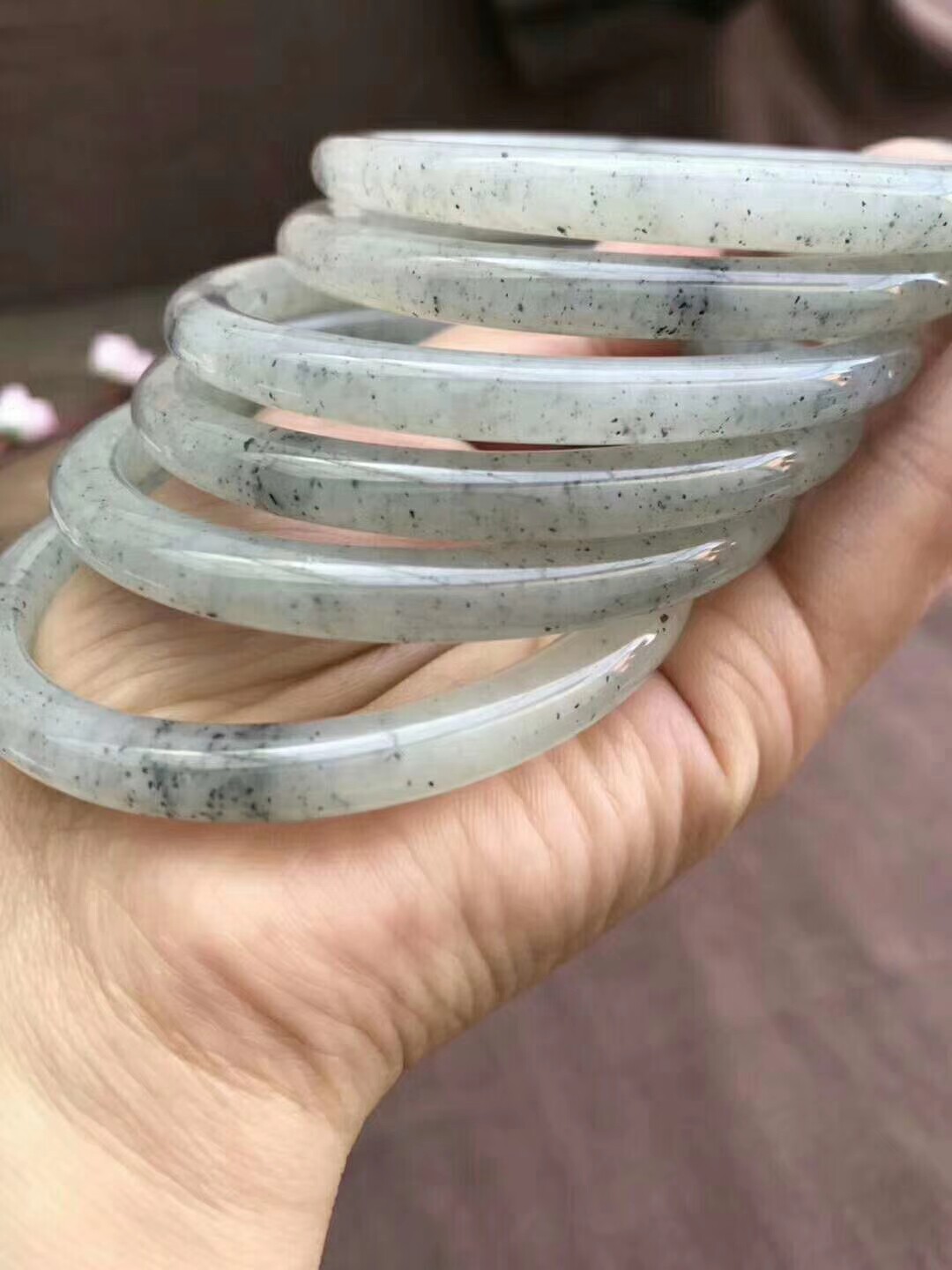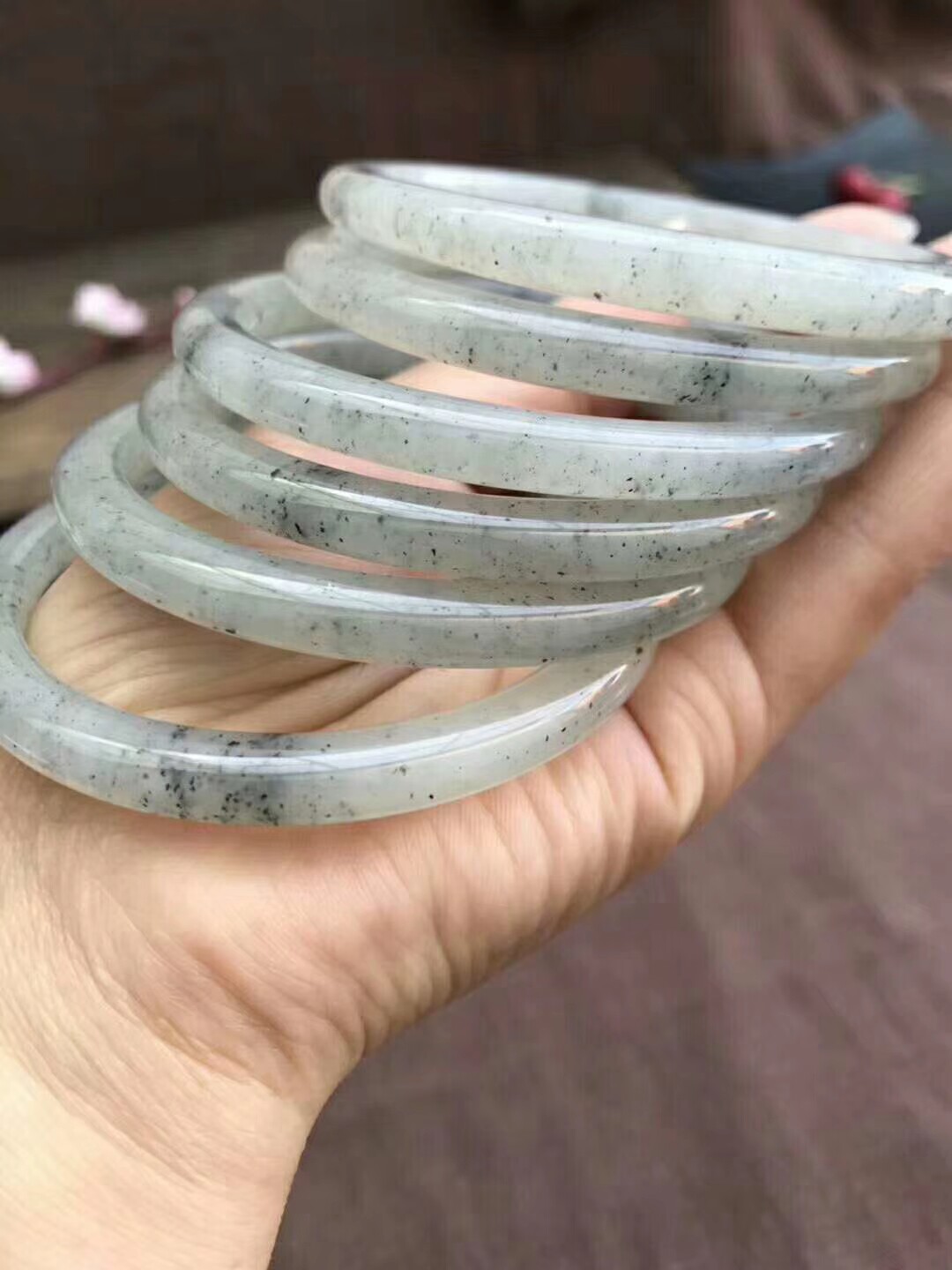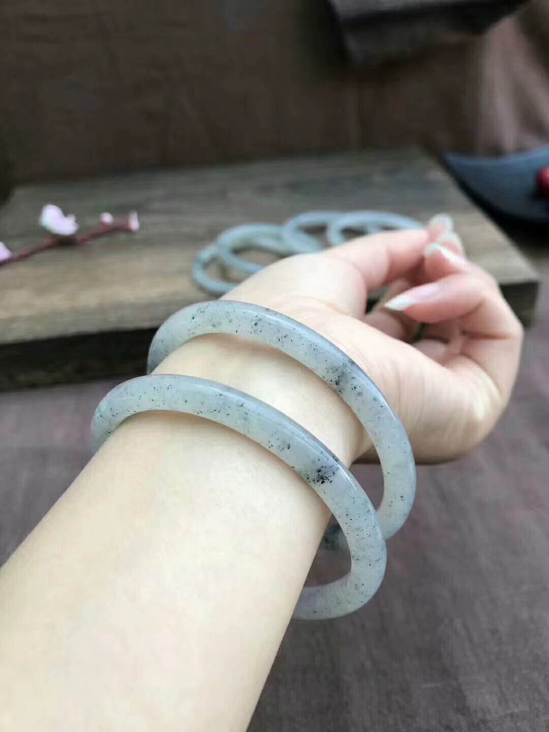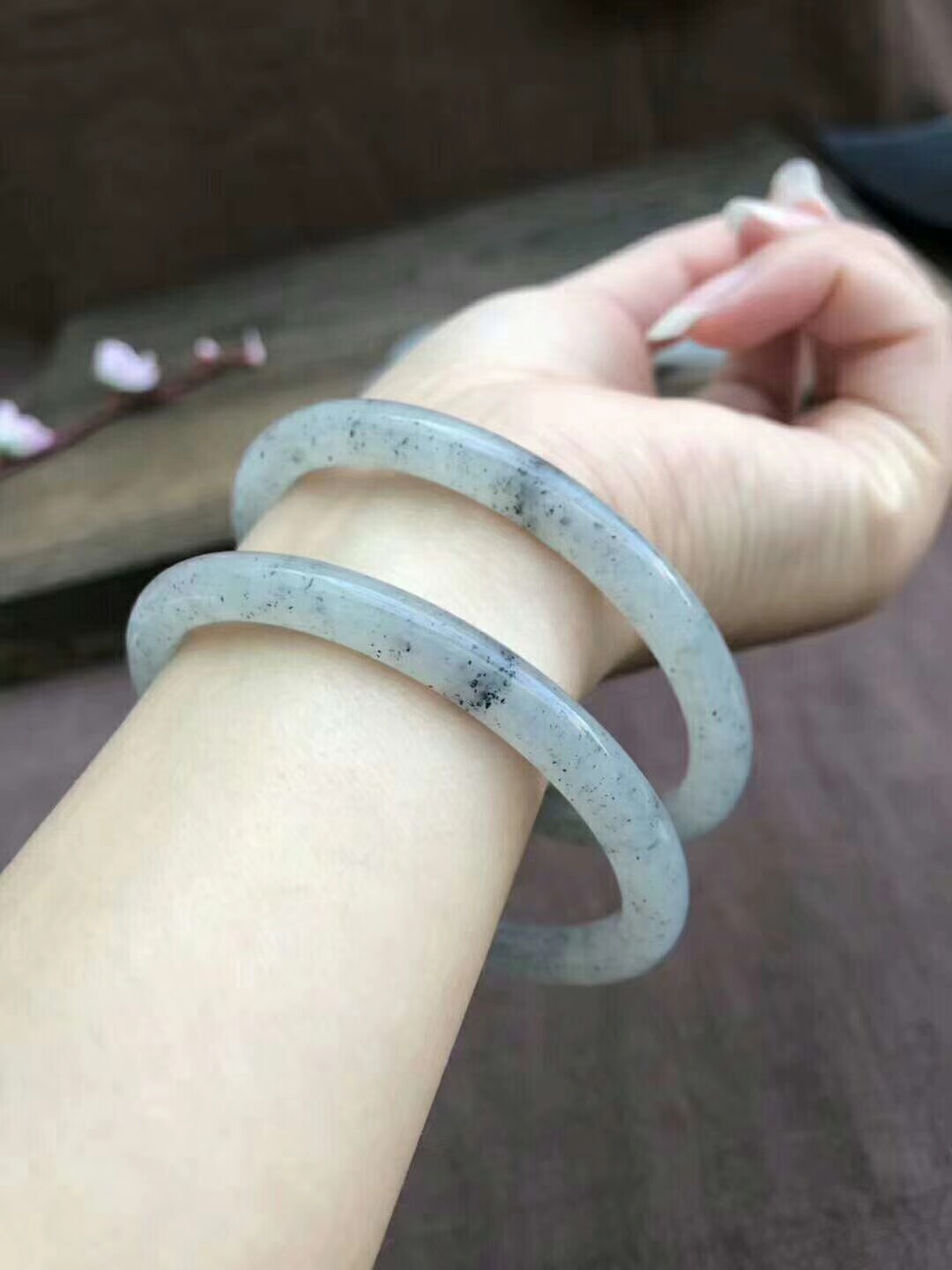 福利55-57圈和田玉青白透闪石老坑料飘墨烟灰色玉石手镯坤圣珠宝