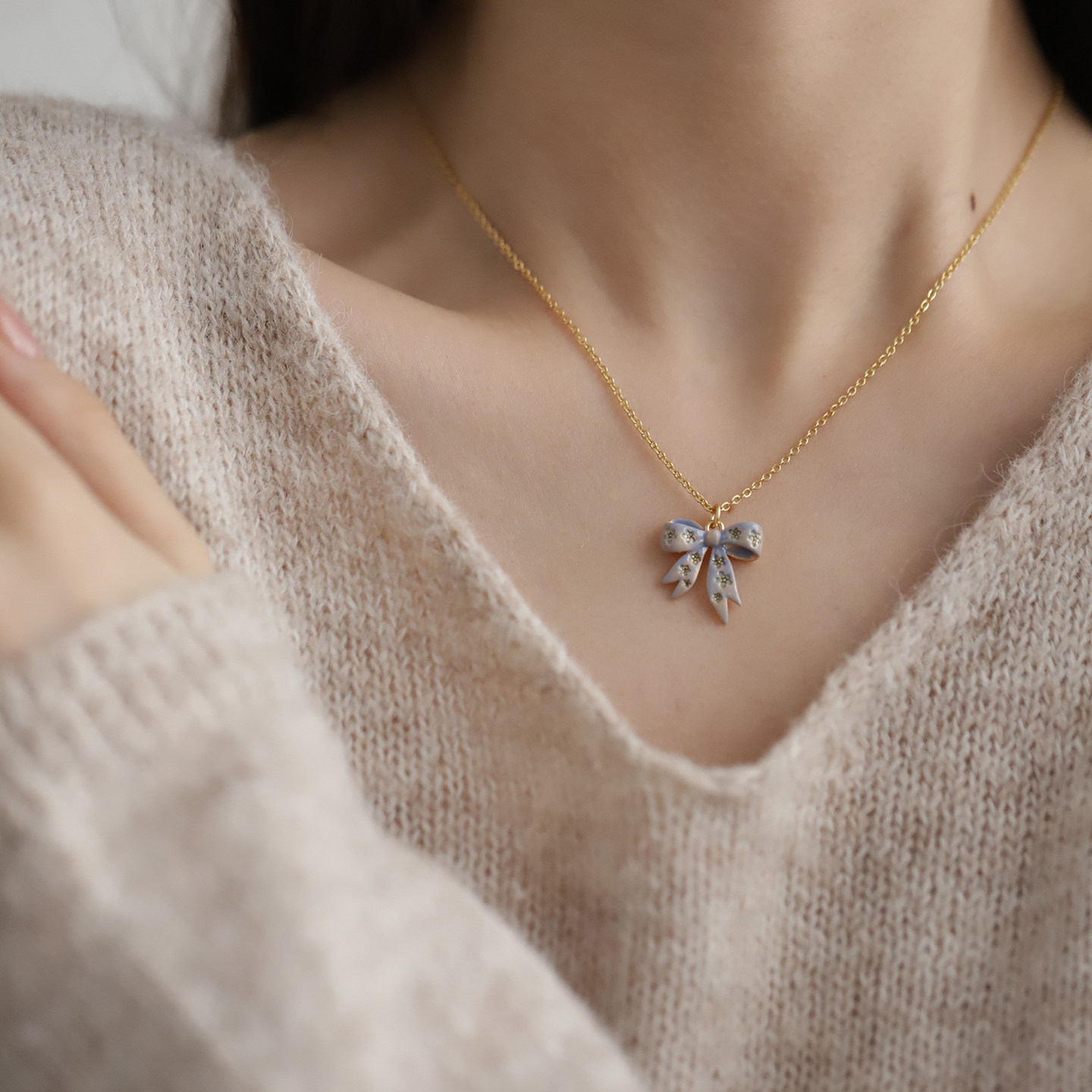 【春夏上新】Fable甜心蝴蝶结珐琅彩项链女吊坠饰品胸链轻奢小众