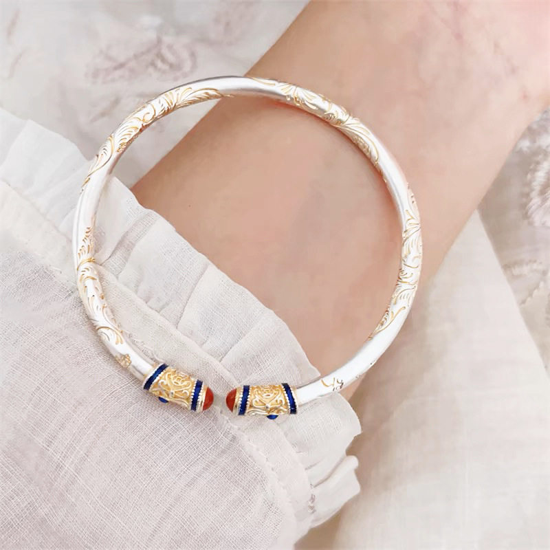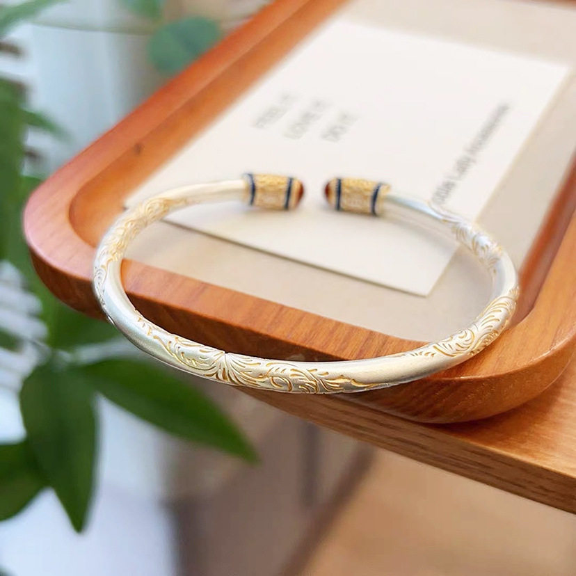 新中式古法描金卷草纹手镯女实心平安祥云如意喜乐国风开口手环