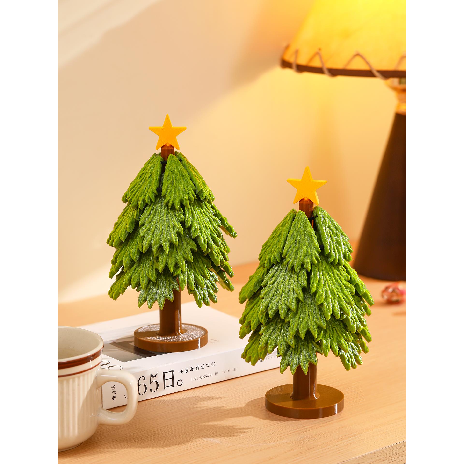 圣诞树隔热垫餐桌高级感摆件创意仿真树实木防烫锅垫折叠杯垫碗垫