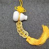汉白玉超大号白玉葫芦纯铜大号五帝钱挂件吉祥家居饰品黄色红绳