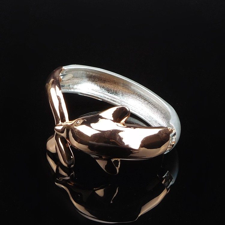 金色镜面海豚白色拉丝面闪耀欧美开口弹簧合金手镯女男装饰品手环