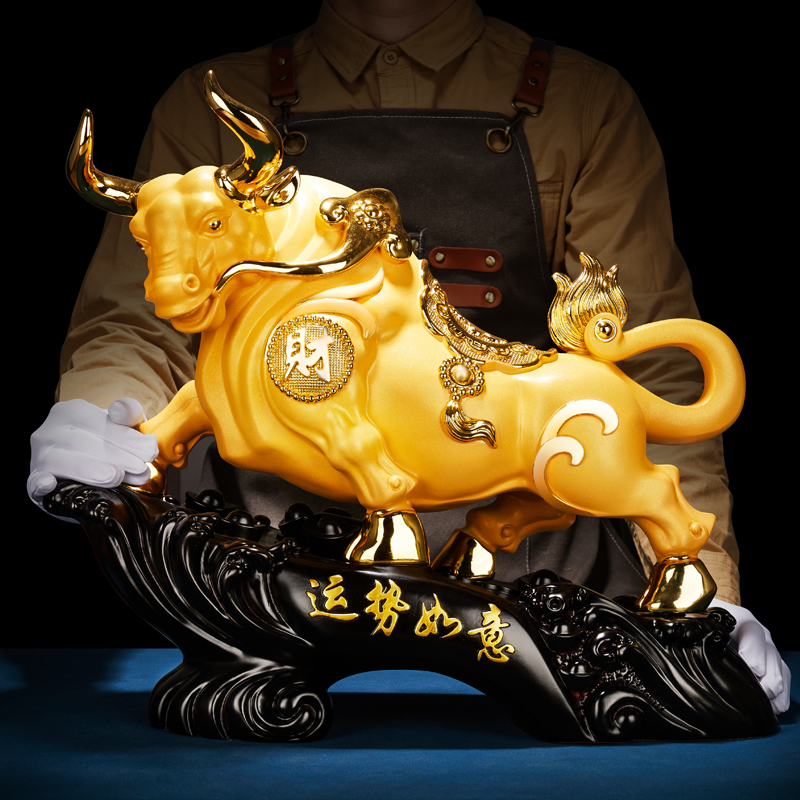 招财金牛摆件生肖牛年吉祥物办公室书桌现代家居客厅玄关酒柜摆设