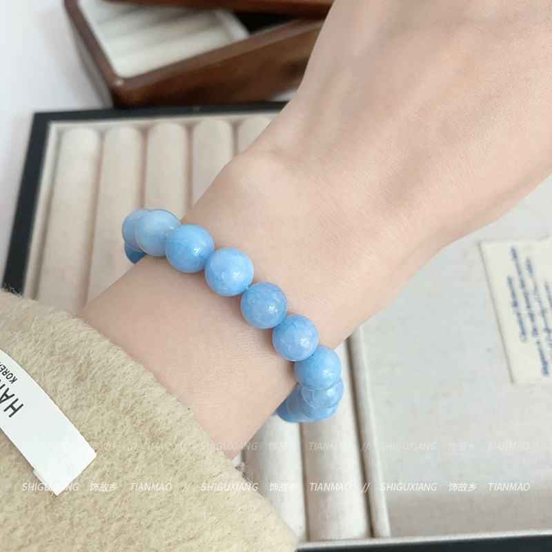 蓝色水晶手串女生手链轻奢小众精致手腕配饰高级感串珠手饰品礼物