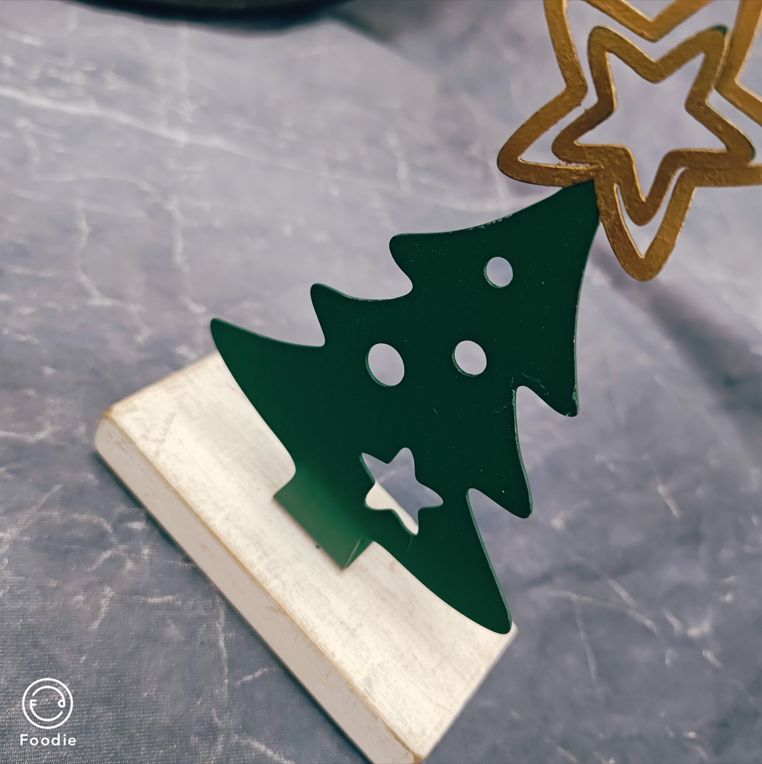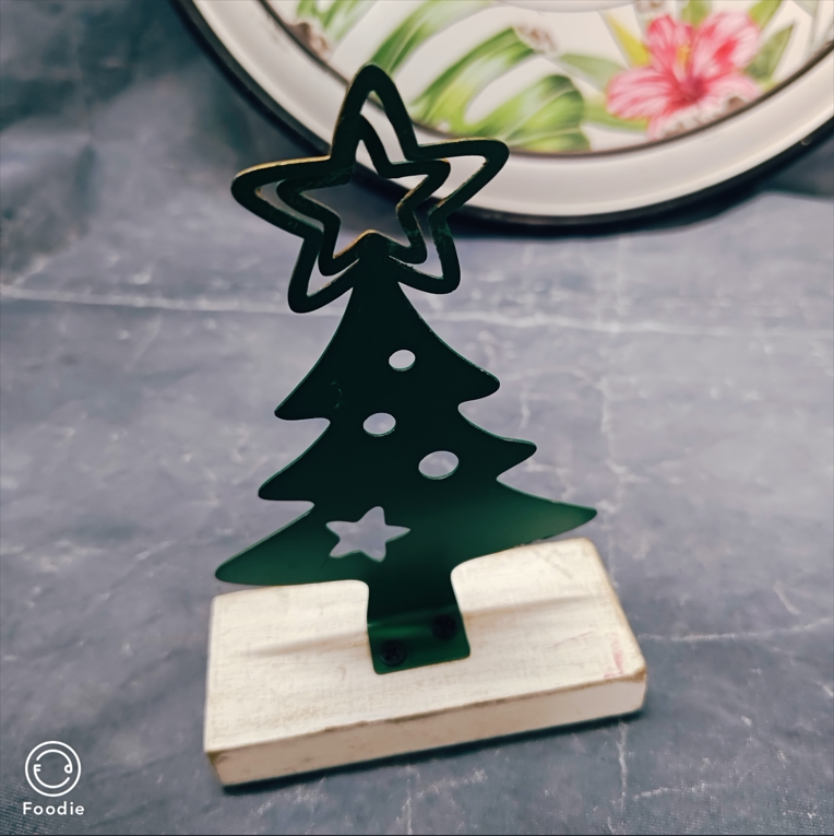 圣诞风绿色圣诞树造型星星铁木结合设计款装饰摆件孤品