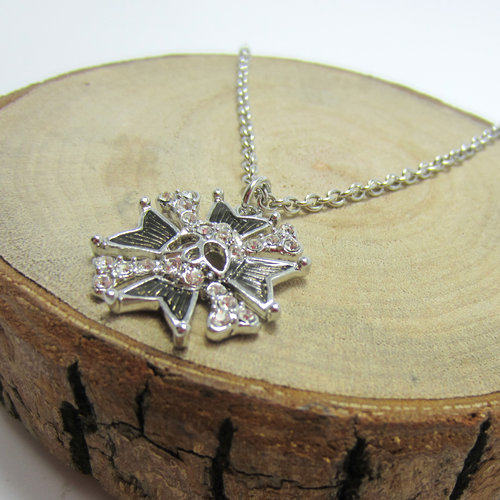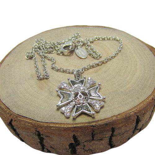 时尚个性 朋克网红INS黑白色骷髅头双骨土星项链--B8204