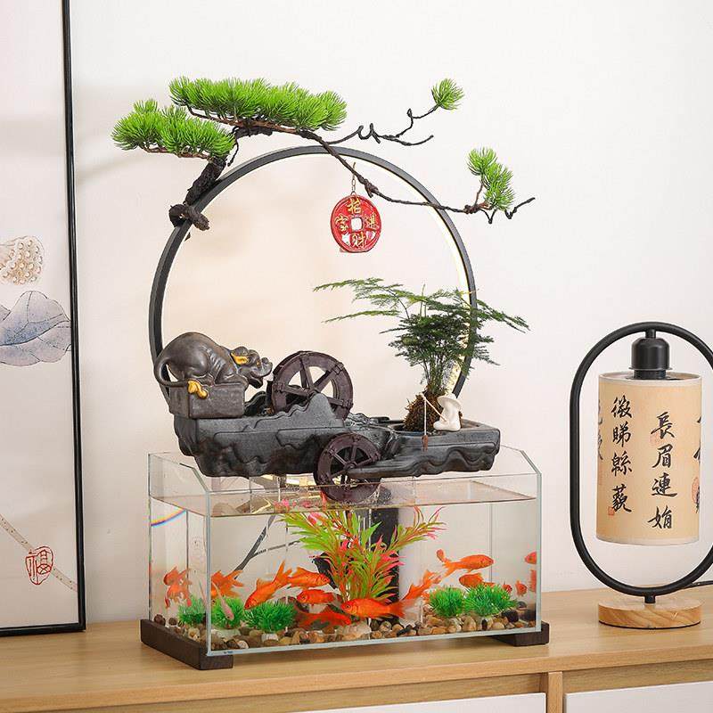 招财流水循环玻璃鱼缸瀑布家居装饰转运球风水轮摆件乔迁新居礼品