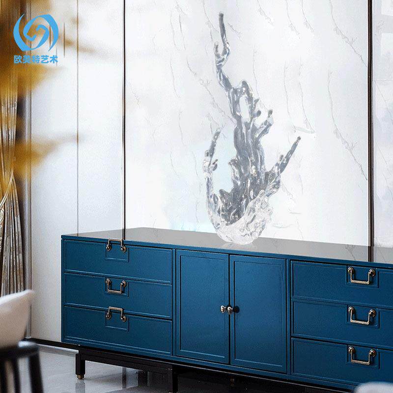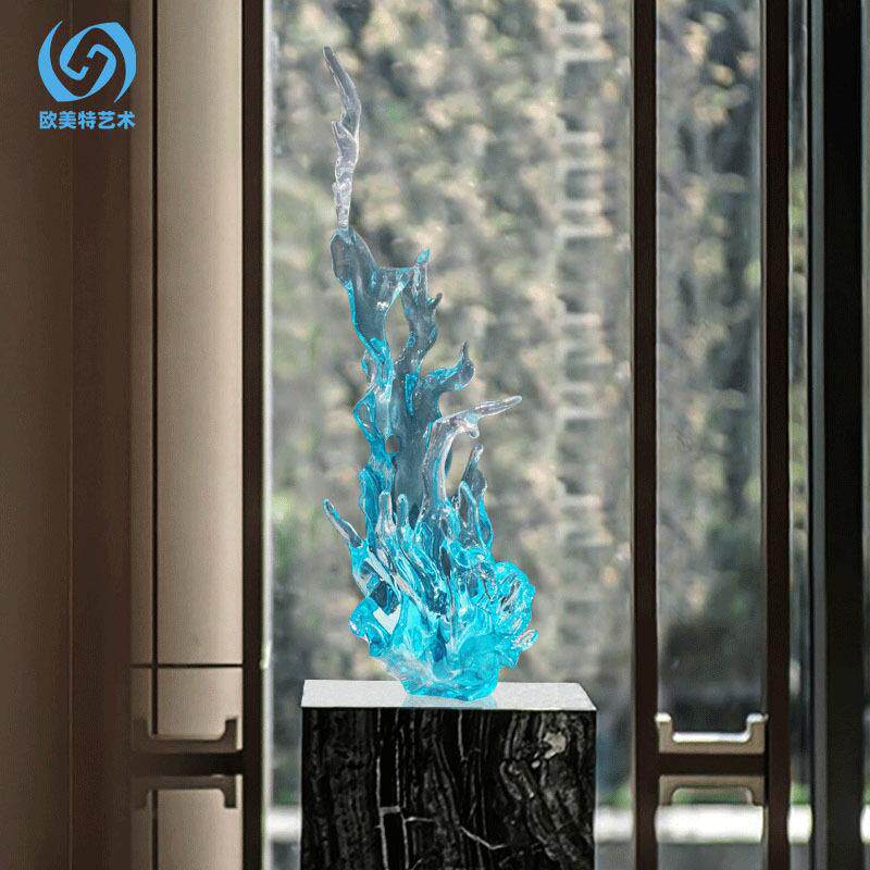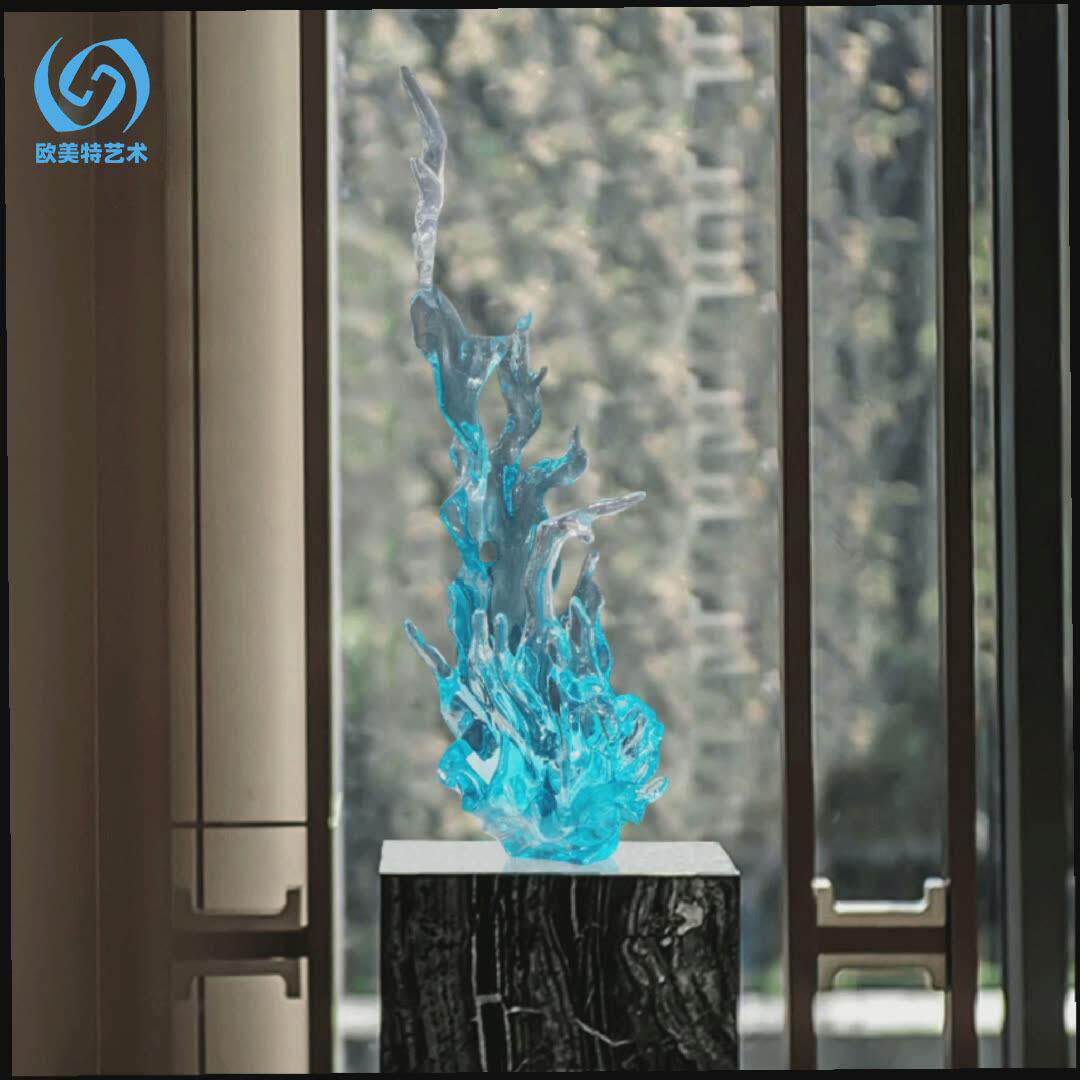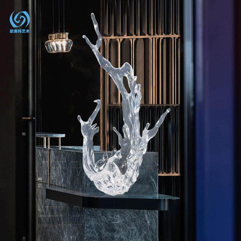 酒蓝色透大会堂所创意抽象水浪花透明雕塑样板房售楼处花工艺店蓝
