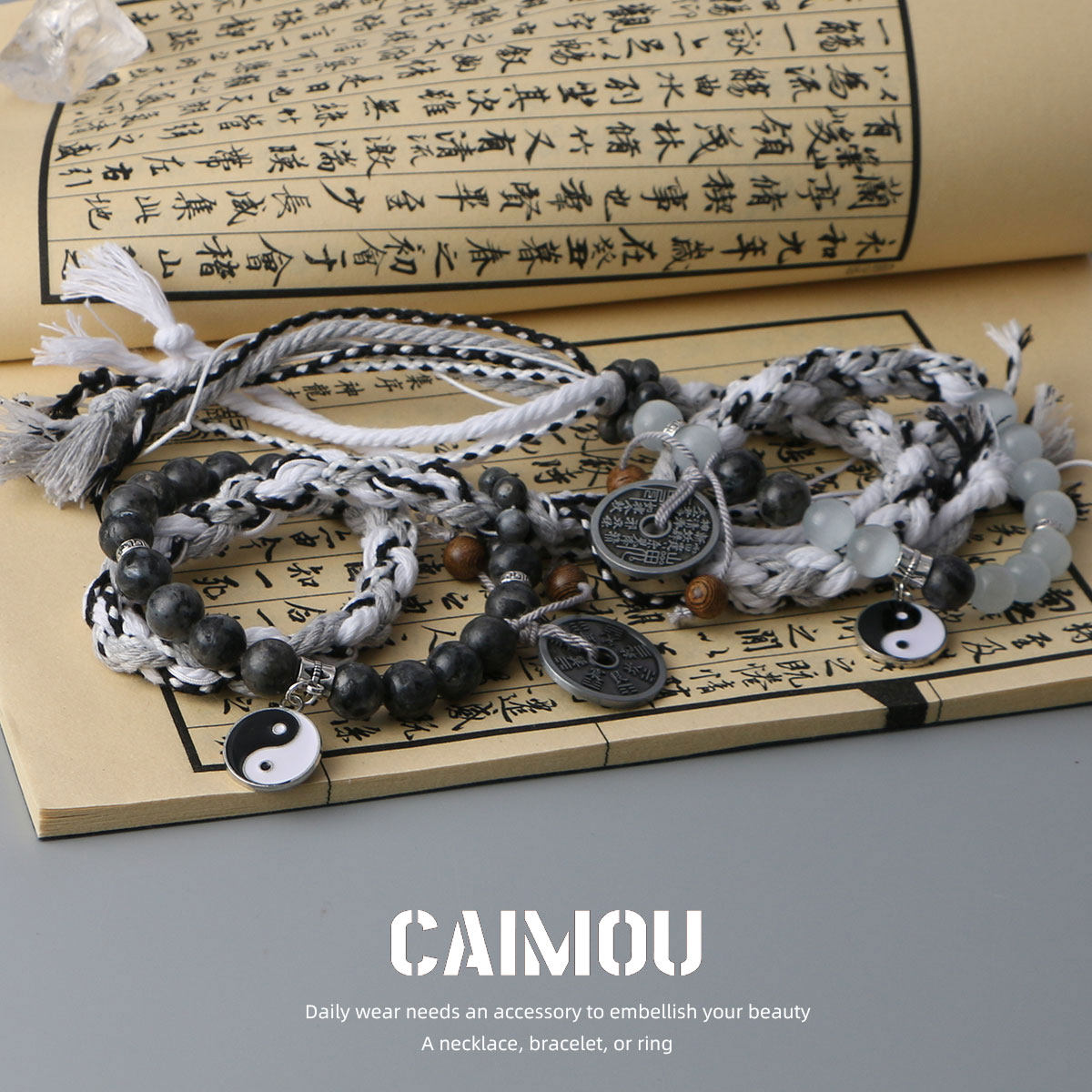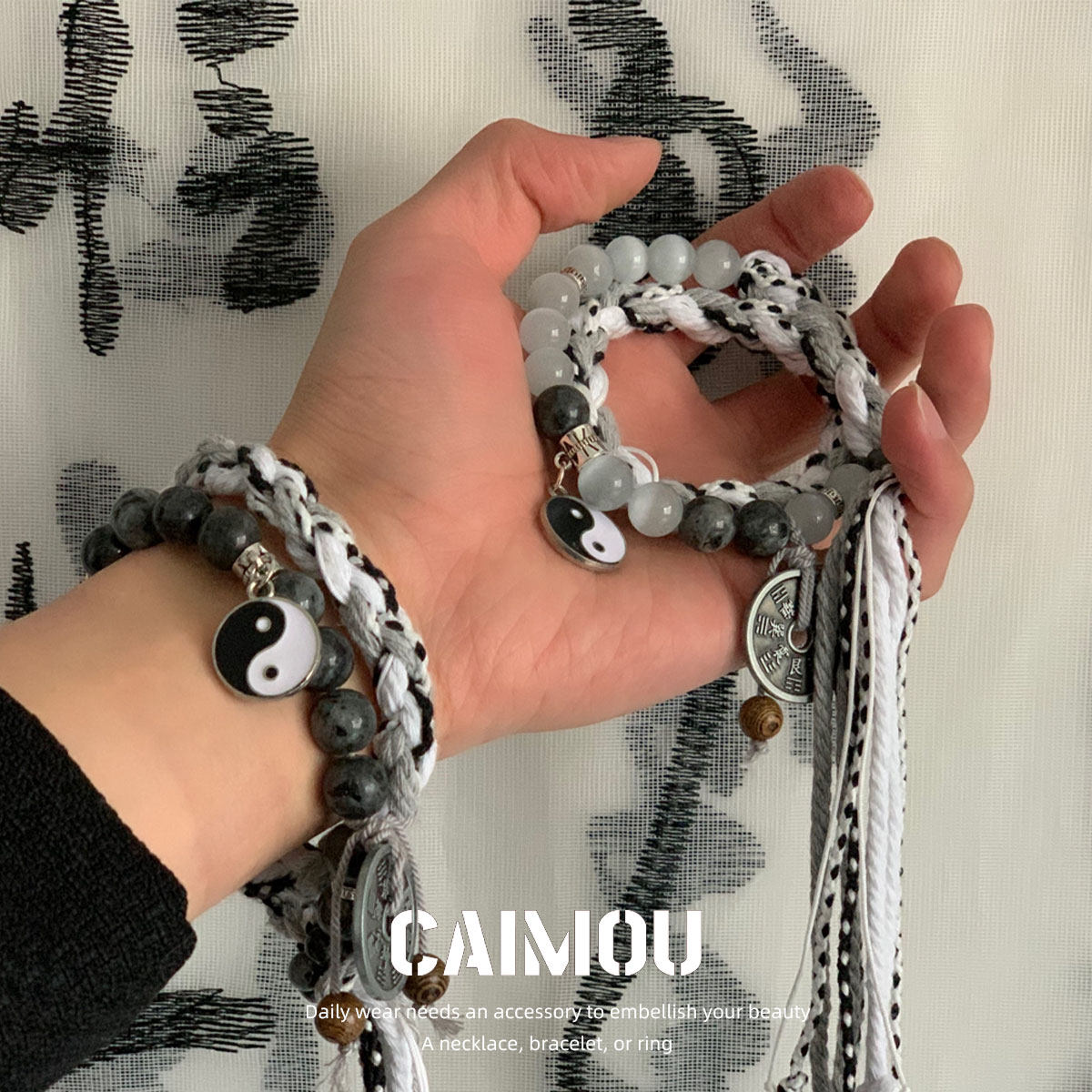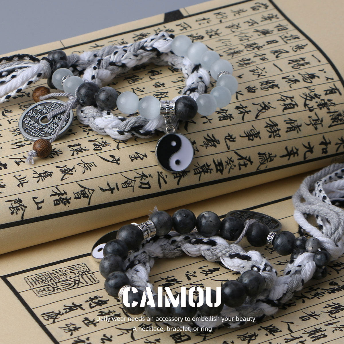 CAIMOU双生太极山鬼花钱手绳男手链女编织小众设计新中式情侣手串