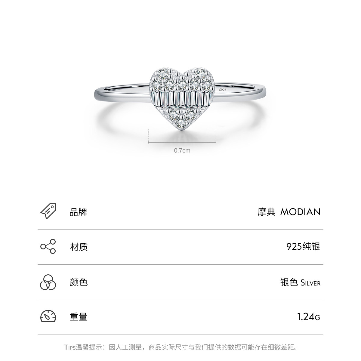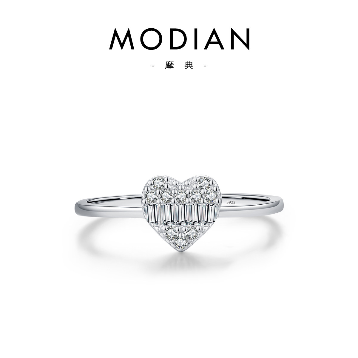 MODIAN摩典S925纯银轻奢满钻爱心戒指女韩版甜美气质ins网红指环