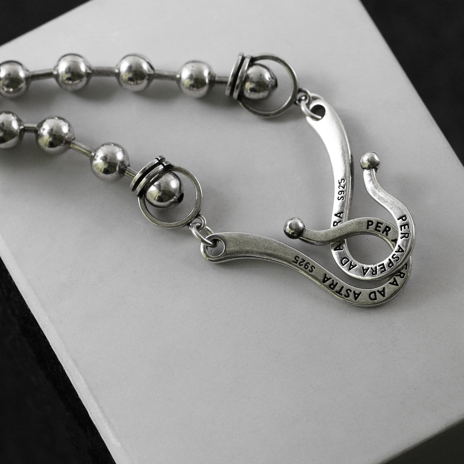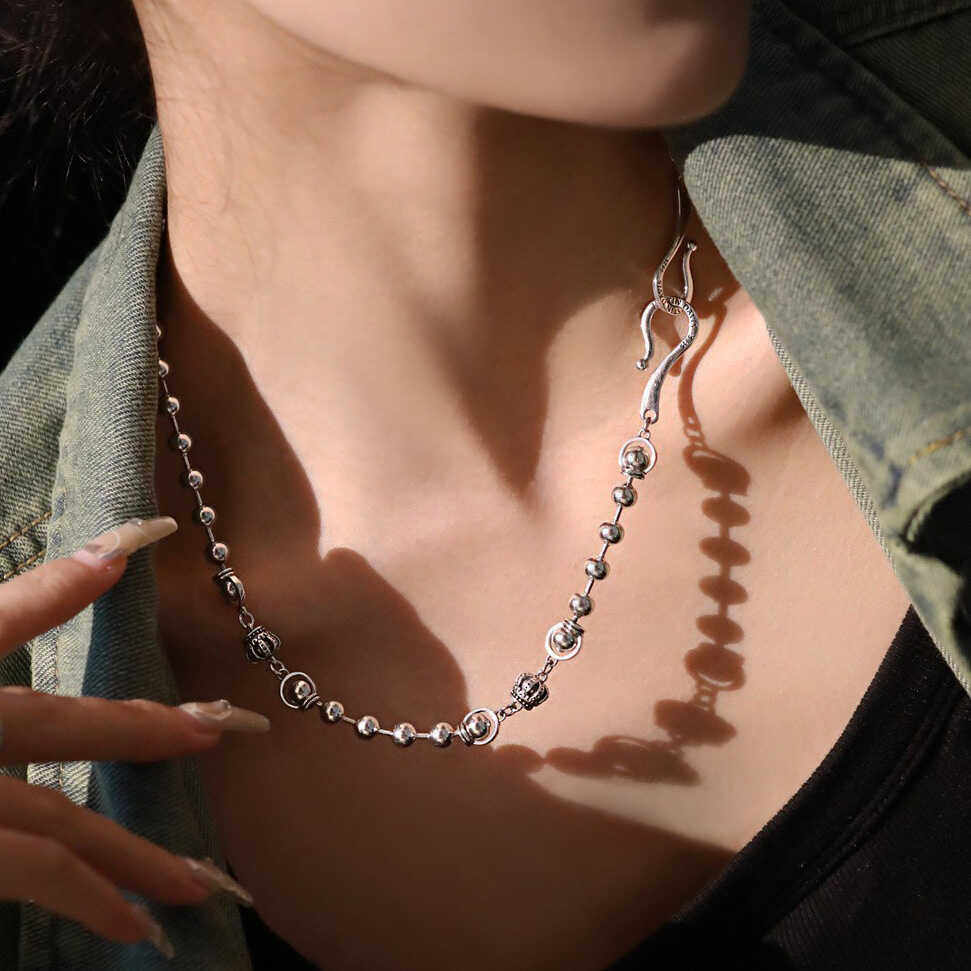 复古925纯银皇冠圆珠双扣头项链女高级感轻奢小众配饰毛衣链48cm