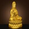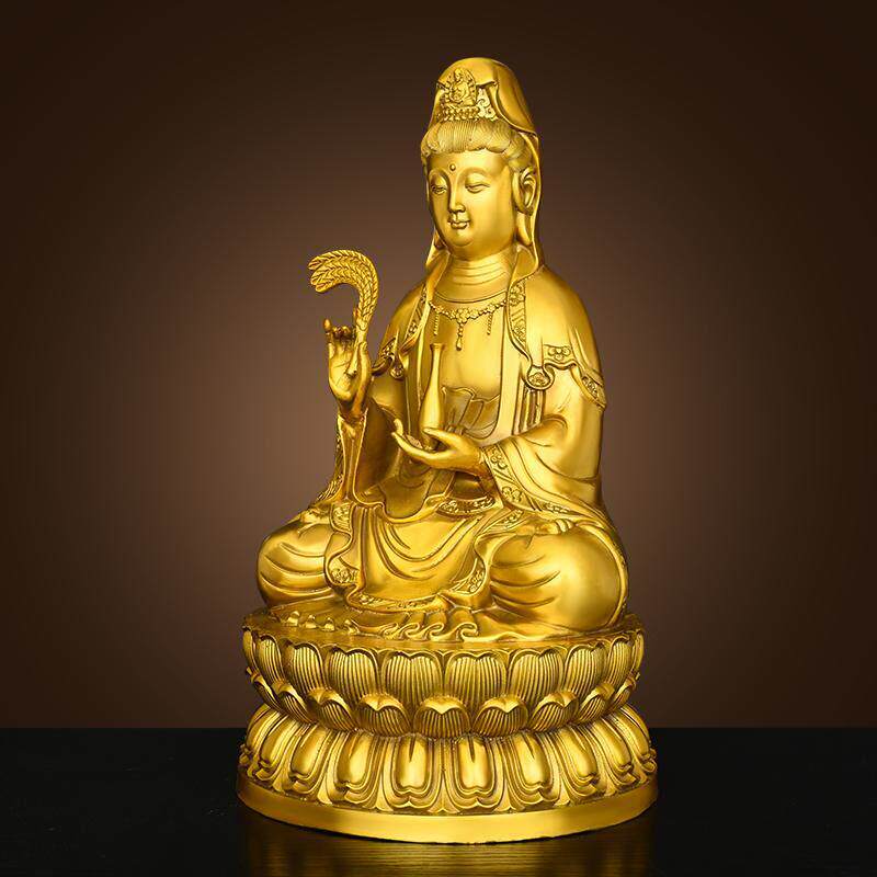 纯黄铜观音菩萨摆件家用佛堂供奉柳枝观音坐莲花净瓶观世音菩萨像
