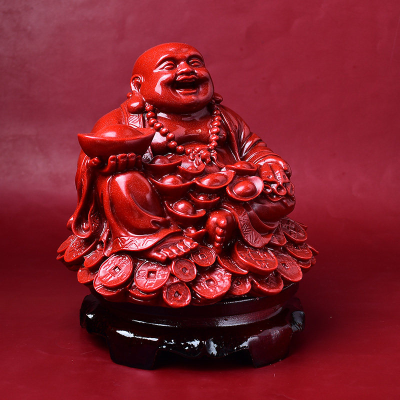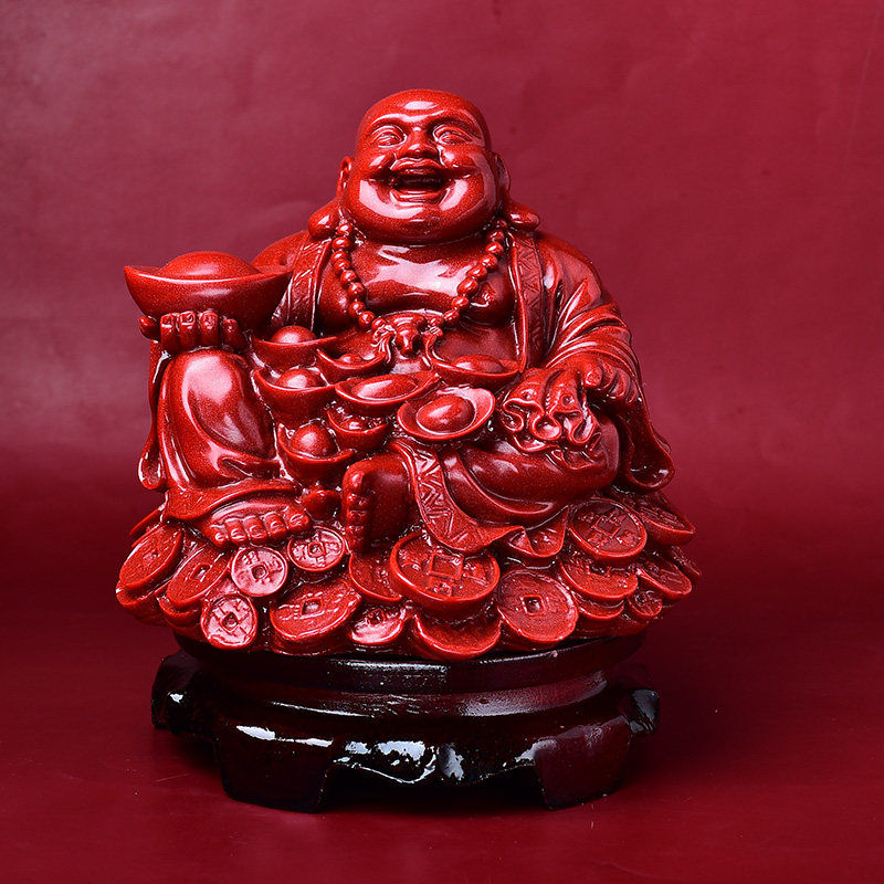 天然朱砂弥勒佛摆件大肚笑脸佛摆件开业家用招财家用佛堂供奉弥勒