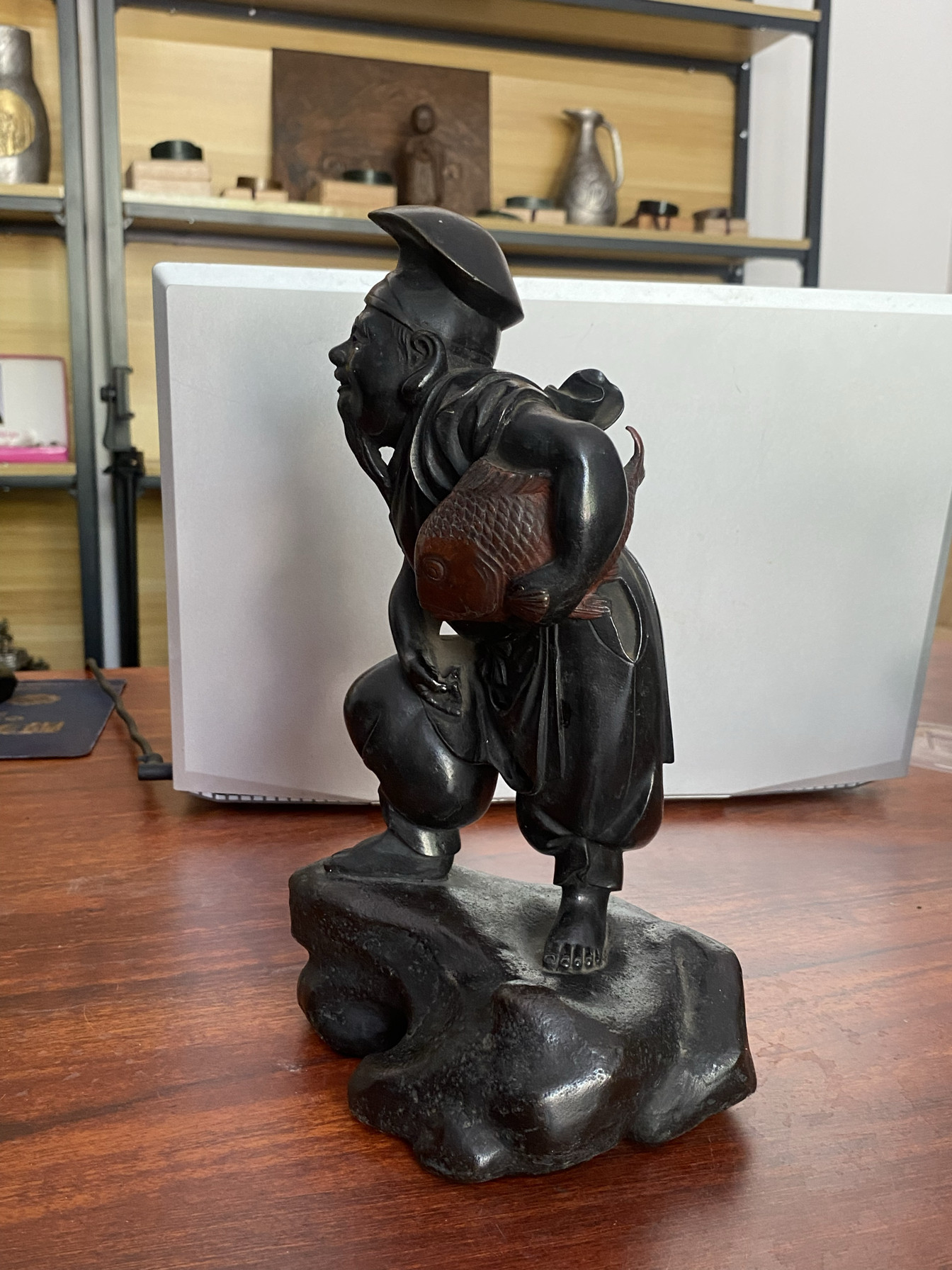 日本铜制松盛款惠比寿雕像,重3.13公斤,高26厘米,老货,包浆厚