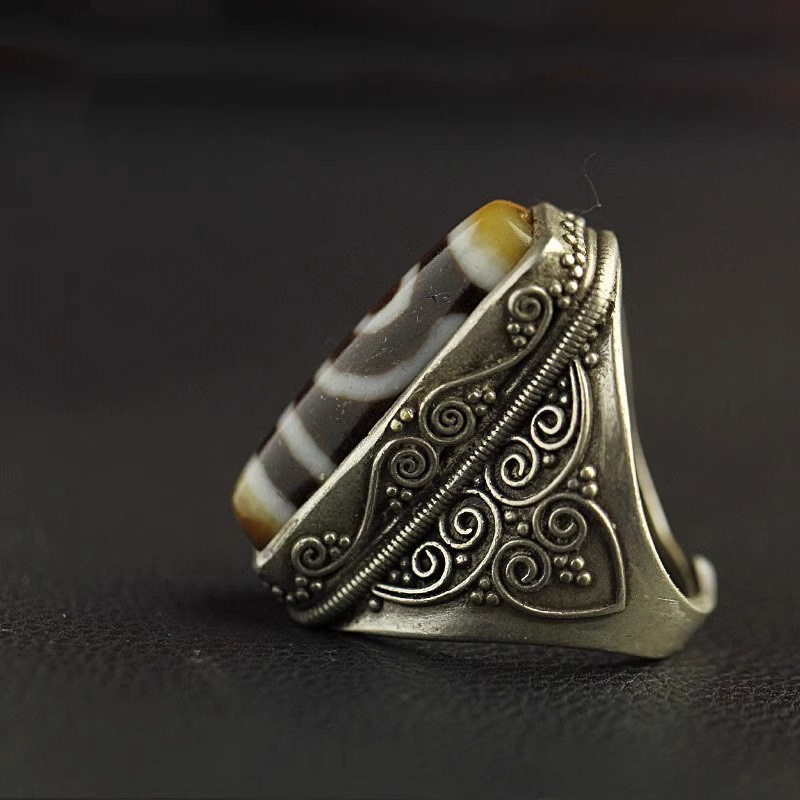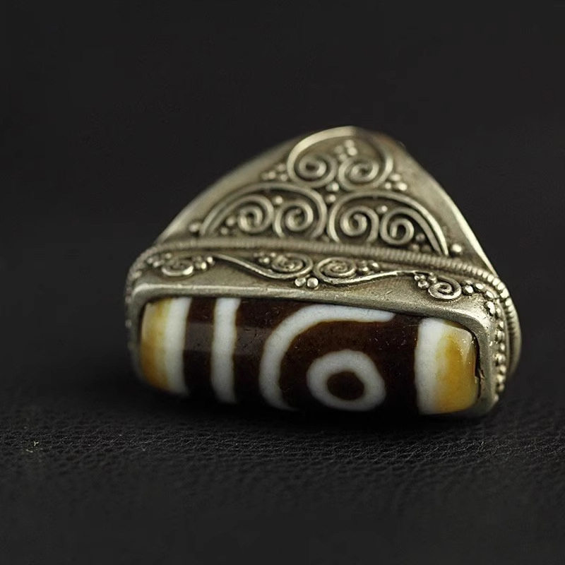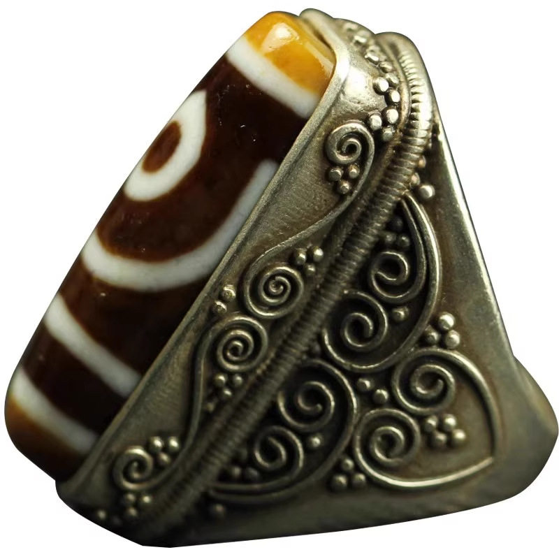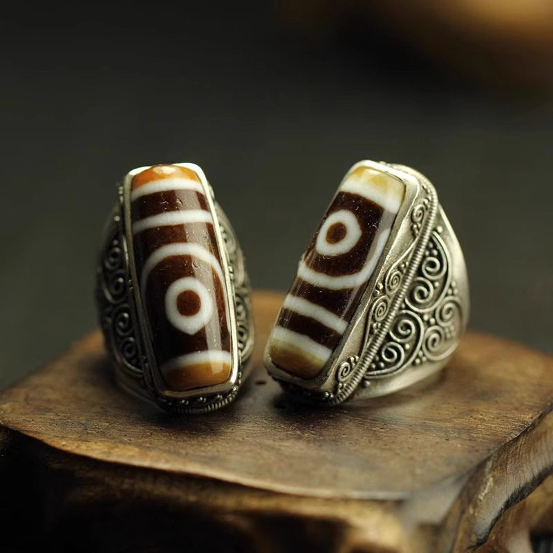 新款现货高品质版本藏式古传统老工艺天珠戒指男女二眼大号指环