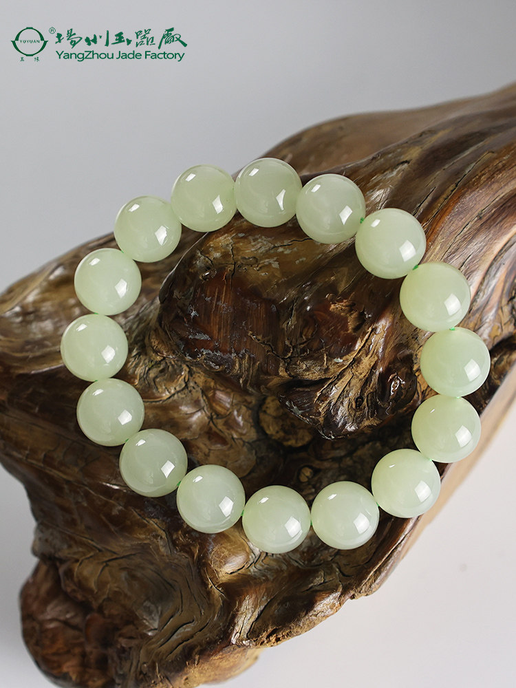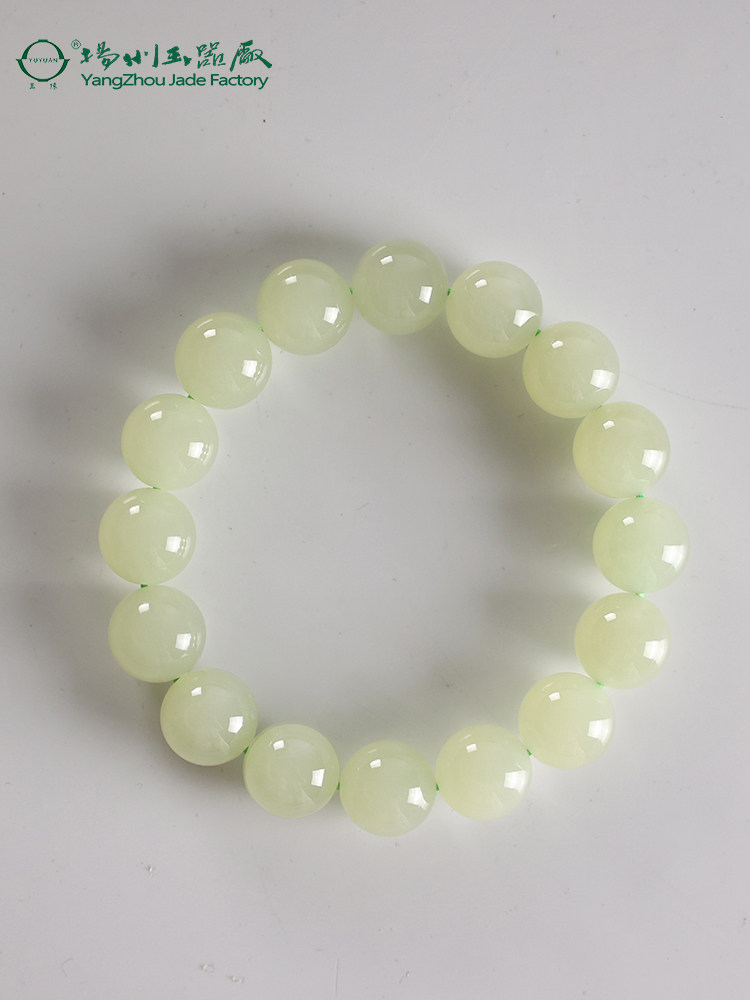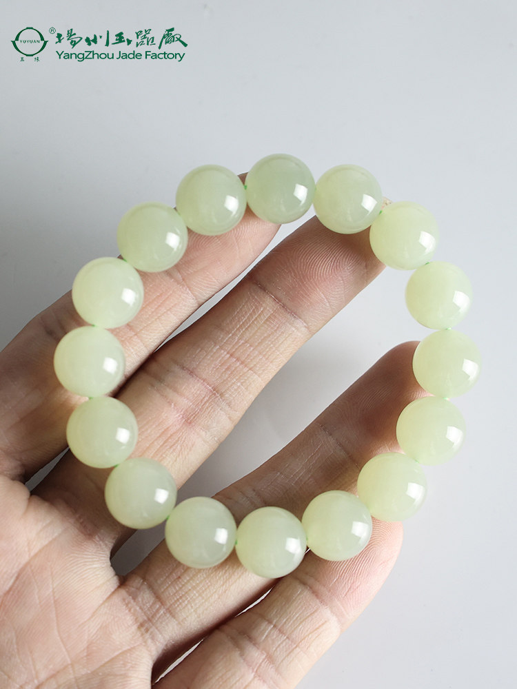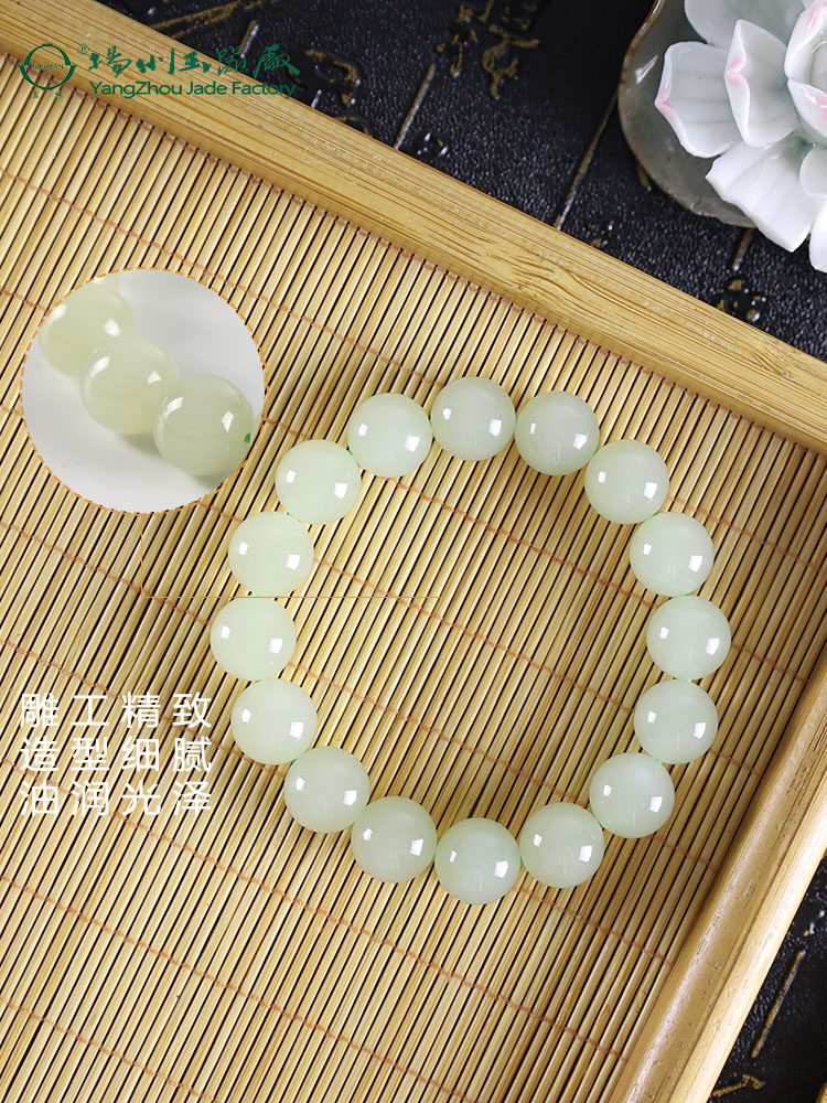 玉缘和田玉青海白玉晴水色圆珠手链手串12mm玉质细腻