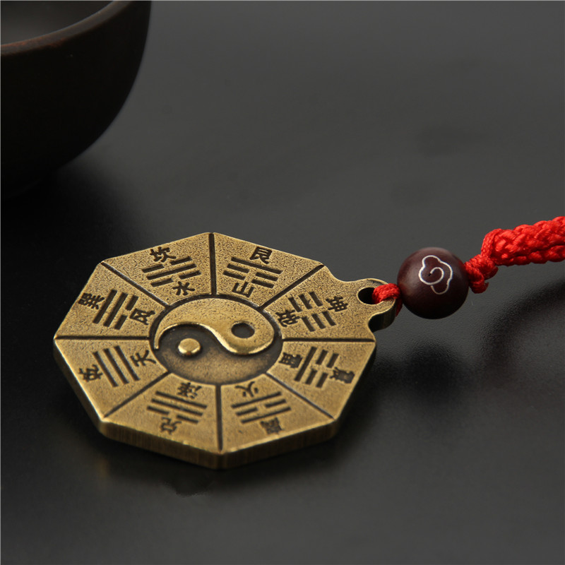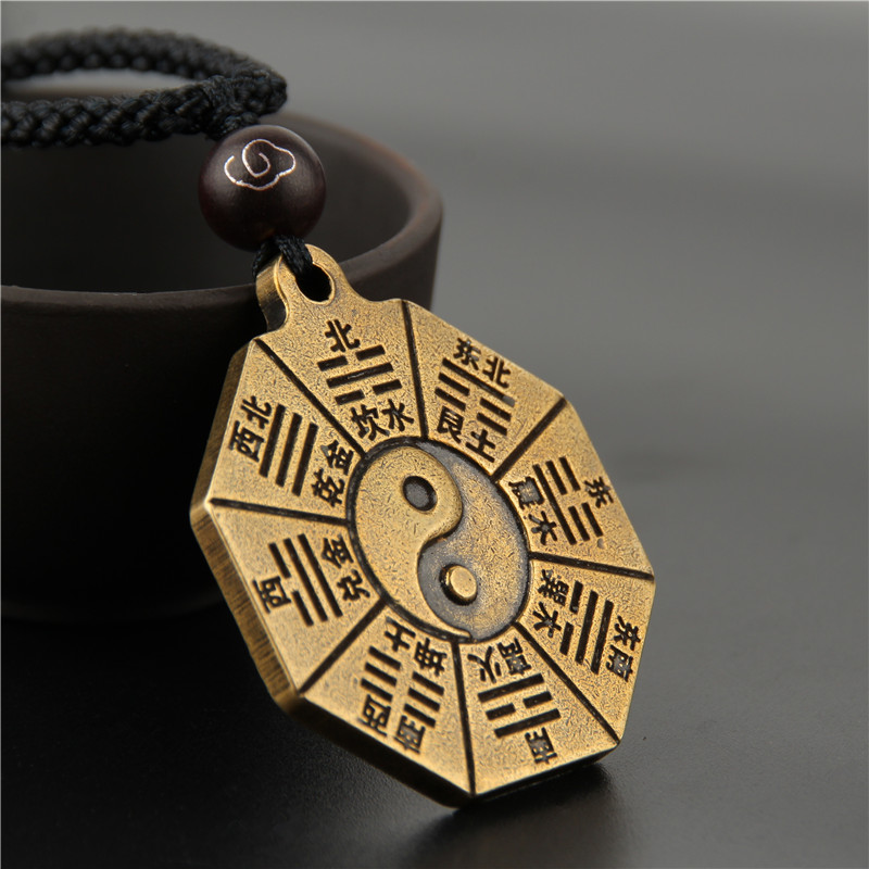 道家复古纯铜阳鱼五行九宫八卦太极图吊坠项链护身男女士饰品挂件