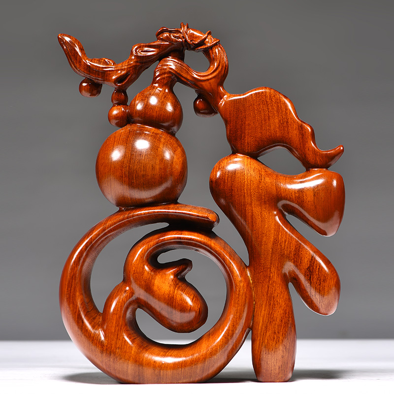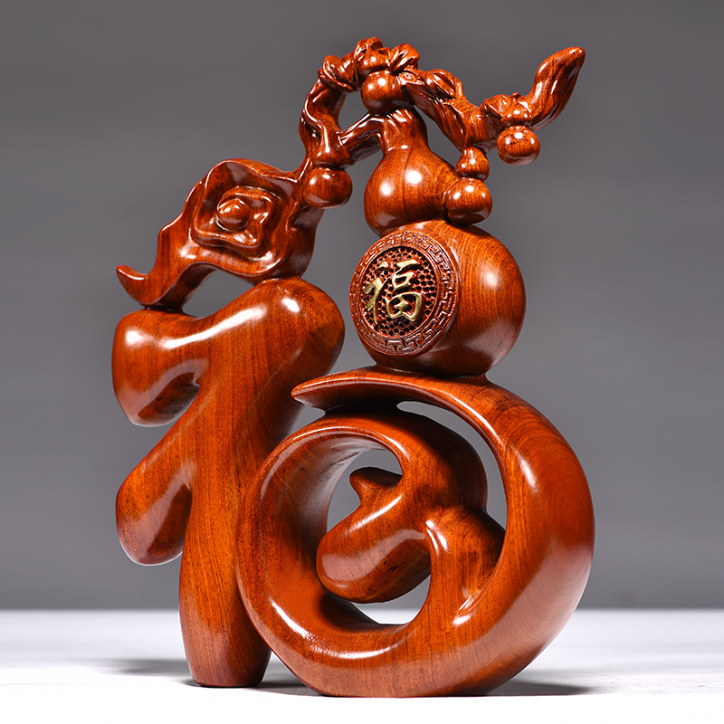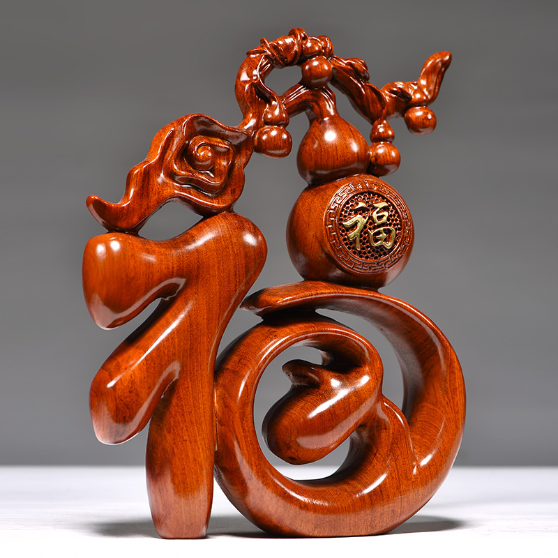 花梨实木雕刻福字摆件新中式家居创意客厅电视柜装饰品工艺品摆设
