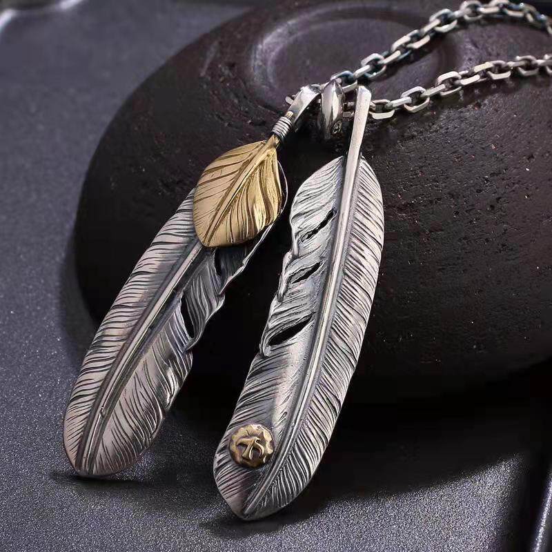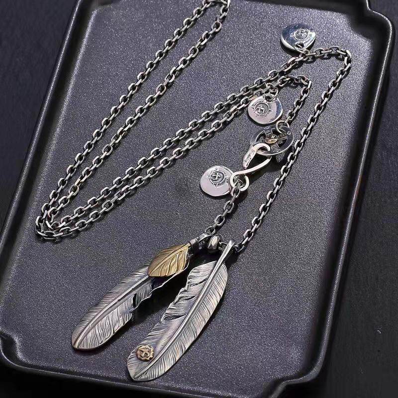 镀925银套链高桥吾郎风格羽毛十字架项链女男士毛衣链余文乐同款