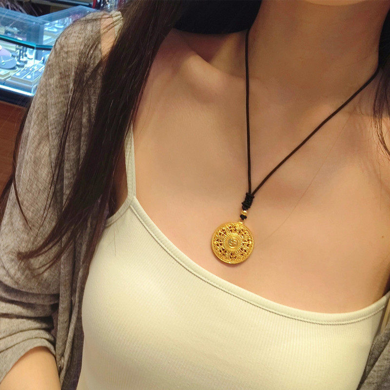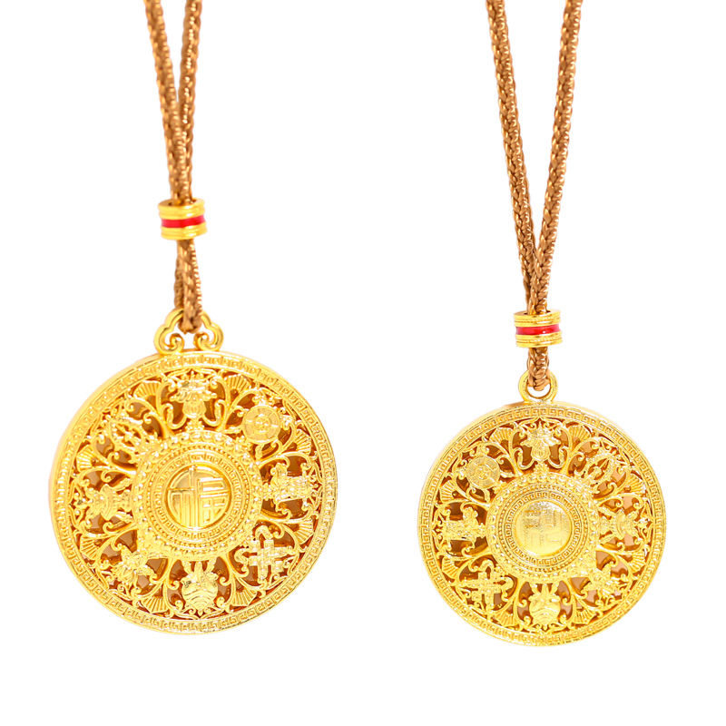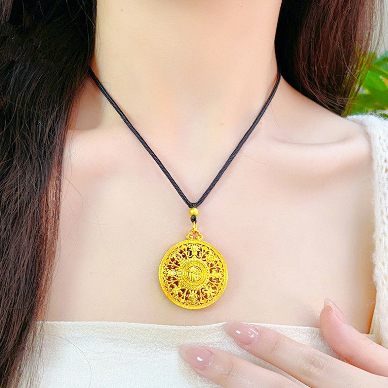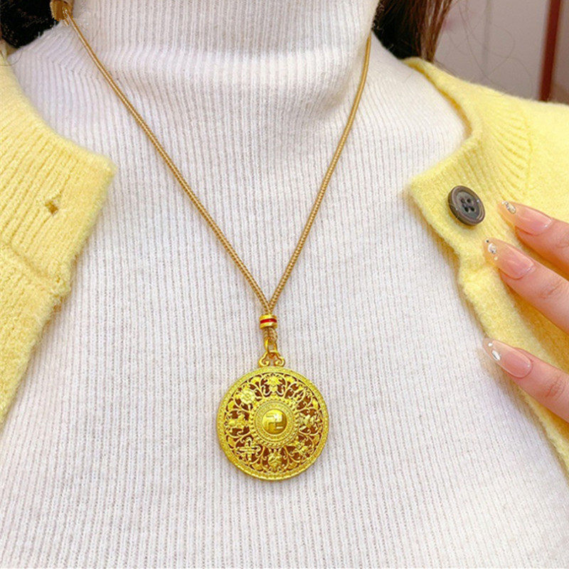 古法金包银八宝罗盘吊坠项链女镂空福字转运珠圆盘挂坠锁骨毛衣链