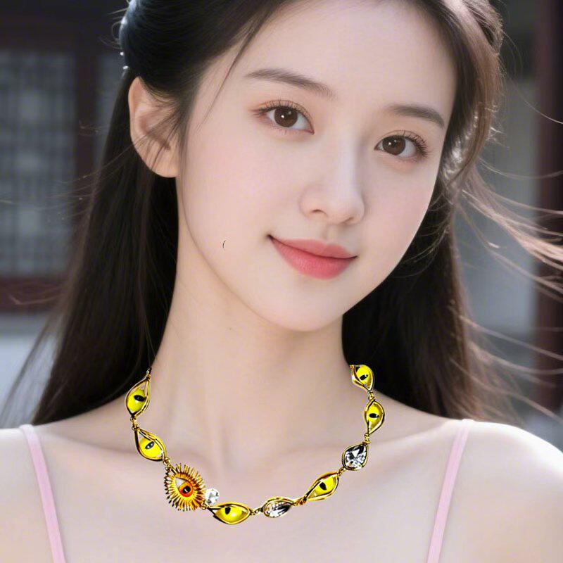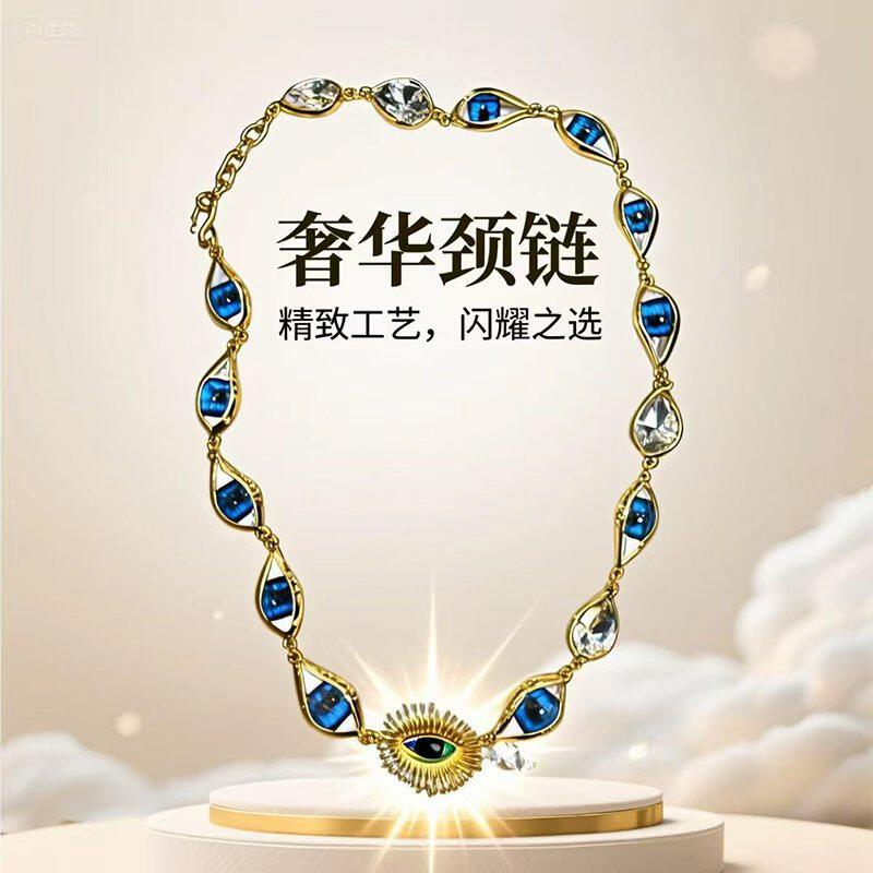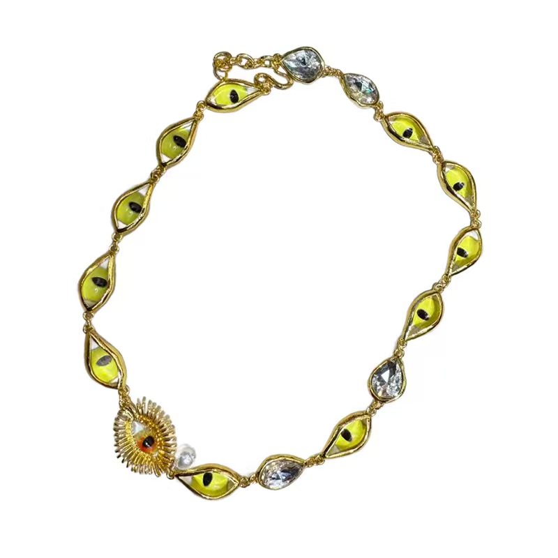 欧美复古搞怪个性恶魔之眼项链波西米亚设计小众元素蓝色锆石颈链