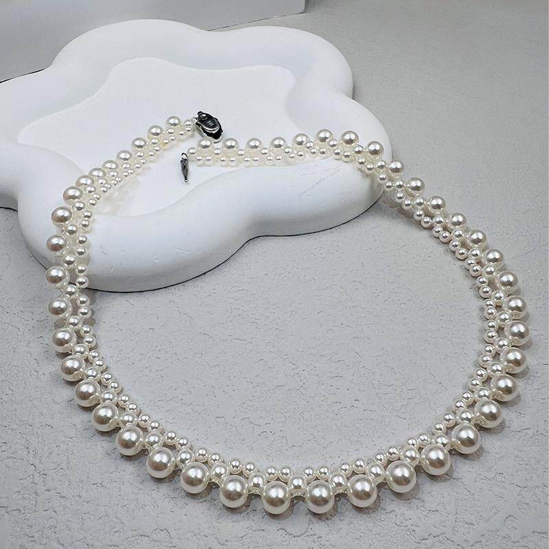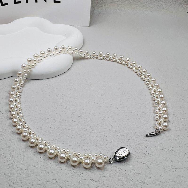 珍珠颈圈女士礼物复古毛衣链银质元宝扣手工设计轻奢饰品高级项链