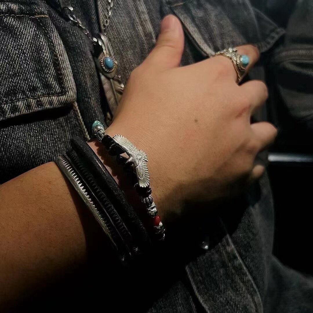 工装飞行员 手工原创复古日本925银银珠小众进口小鹰黑色玛瑙手链