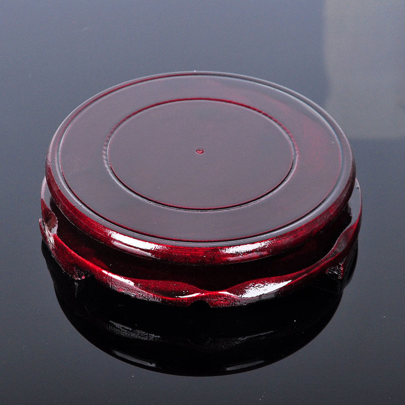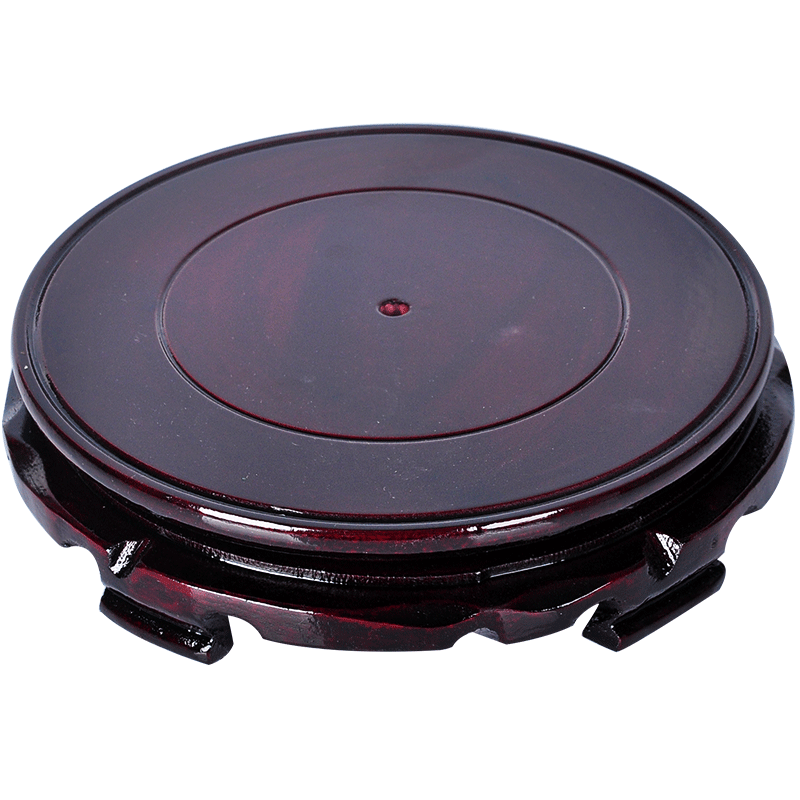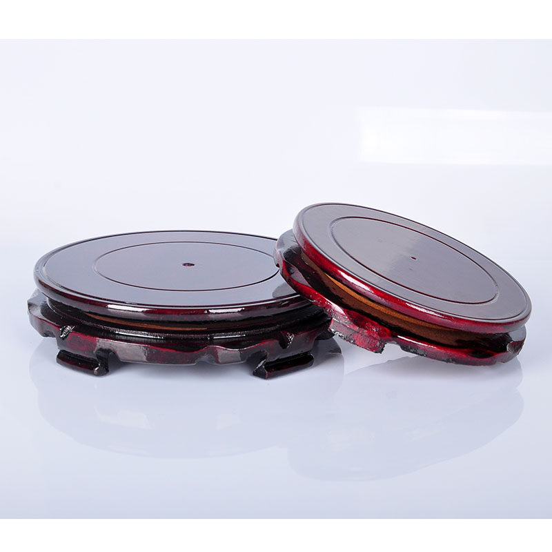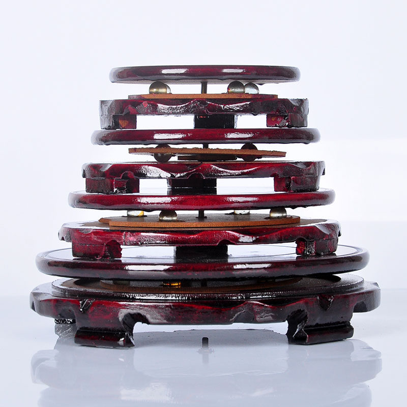 暗红色木制圆形转动底座石头佛像花瓶花盆底座 木制压缩版木托