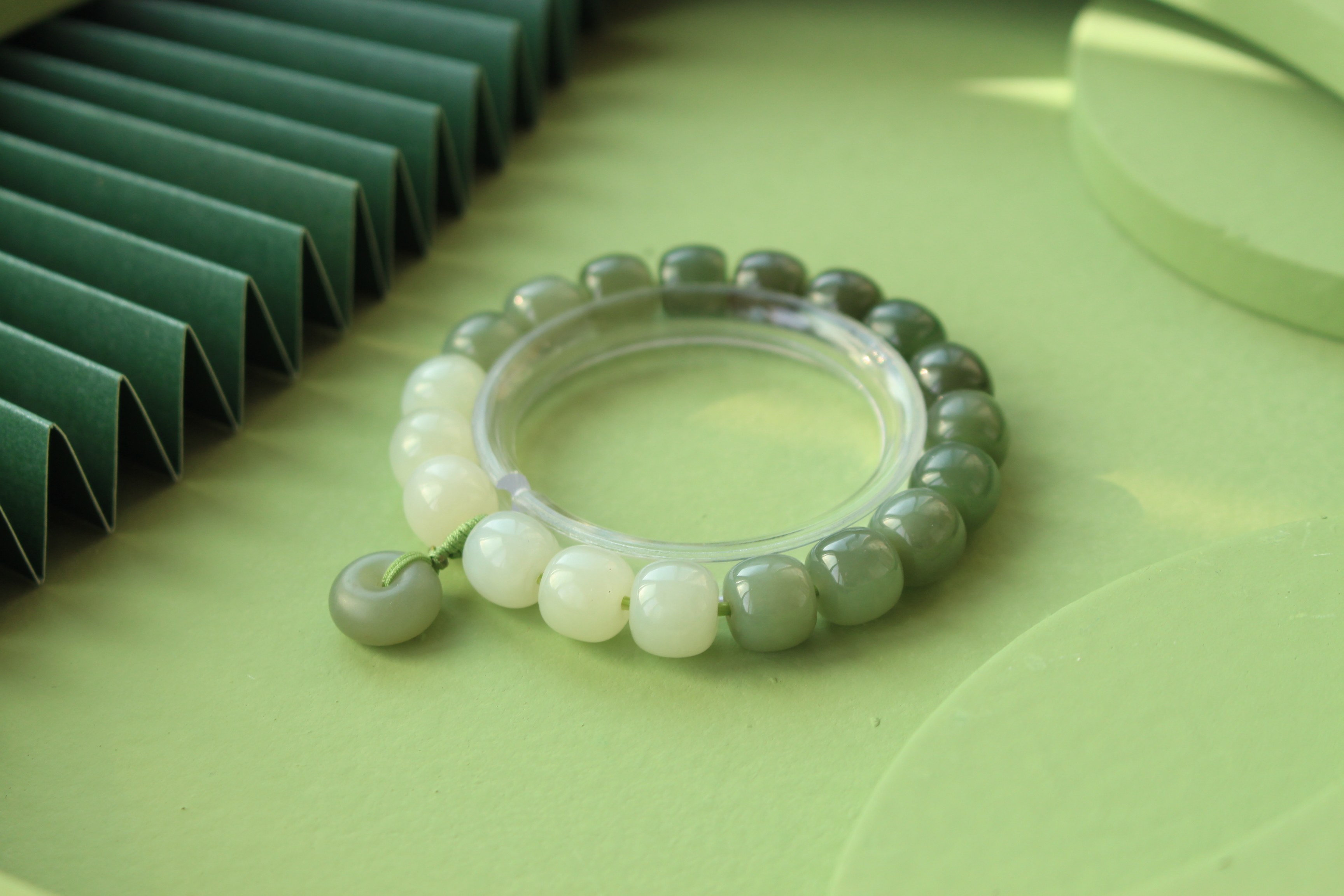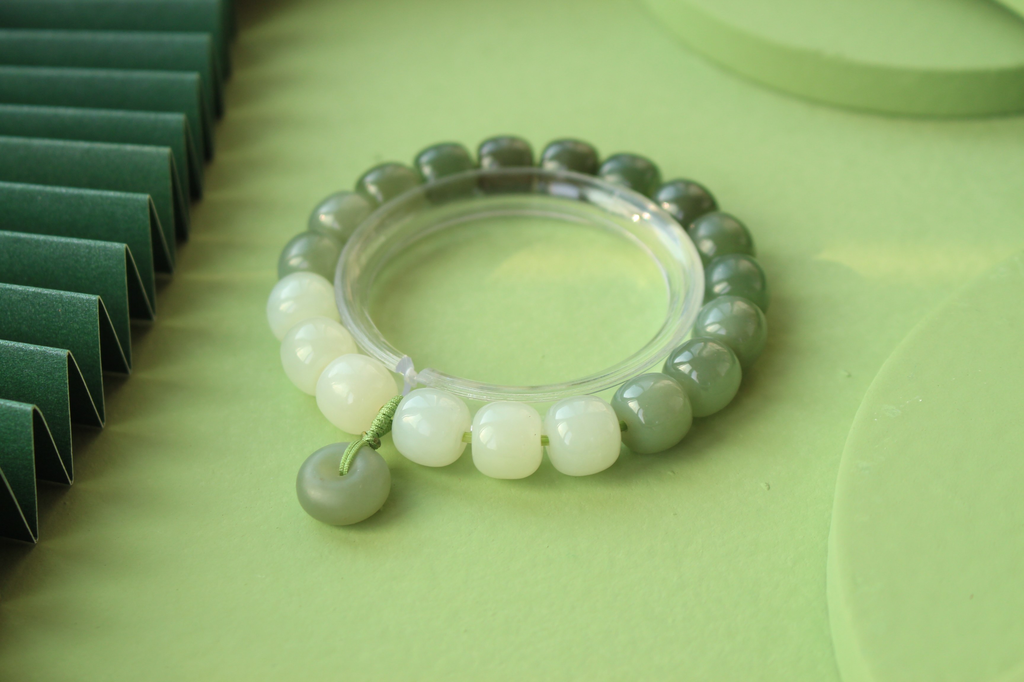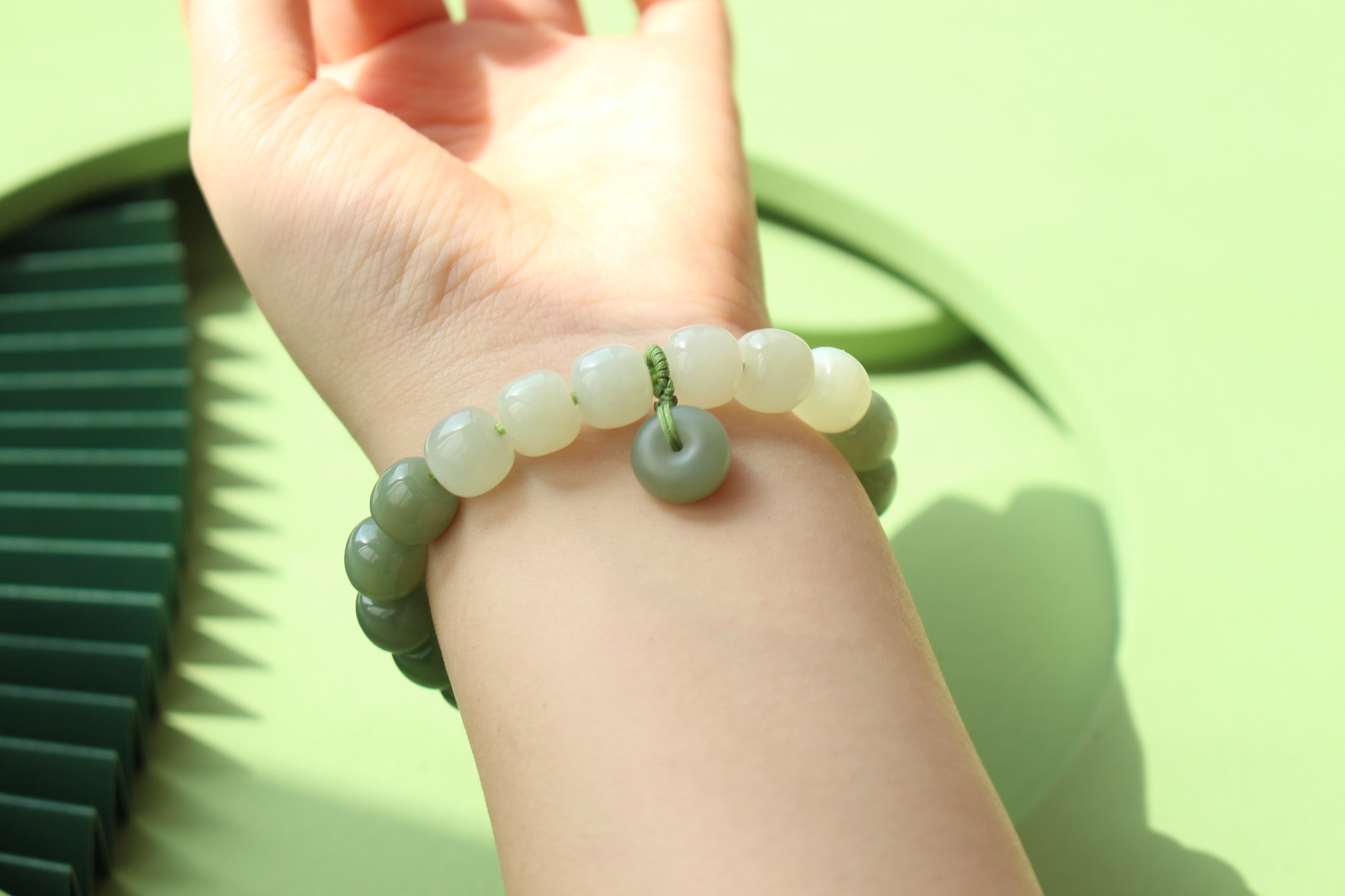 玉绾 天然和田玉手串晴水渐变色女款手链新疆玉石正品女士