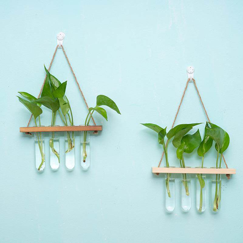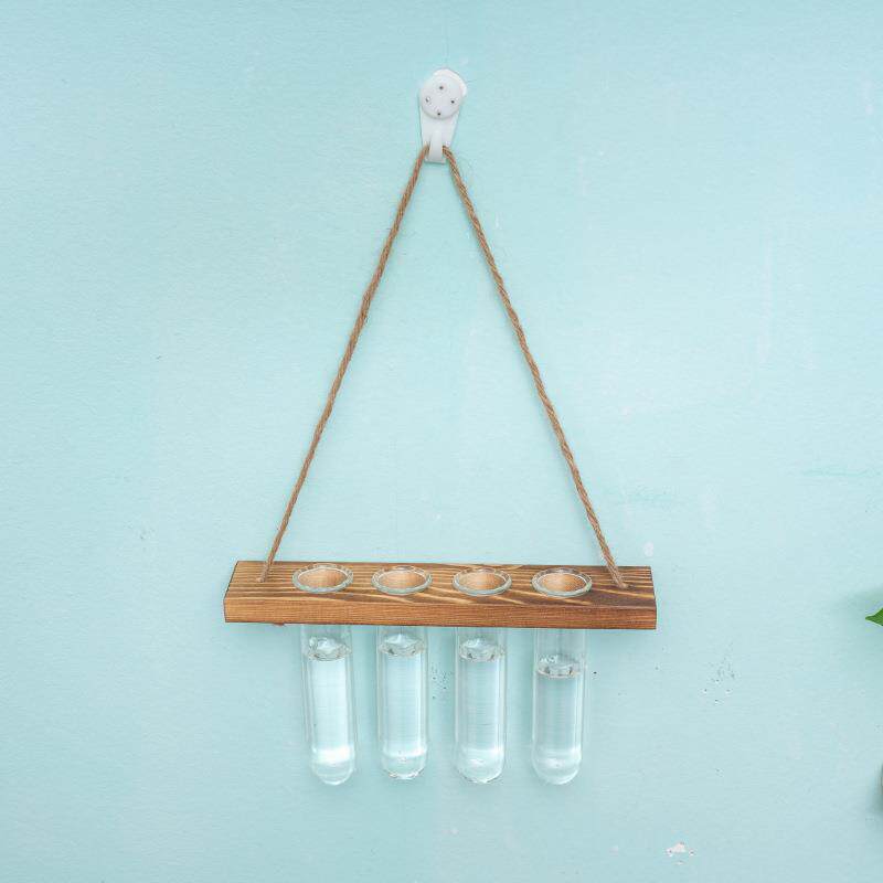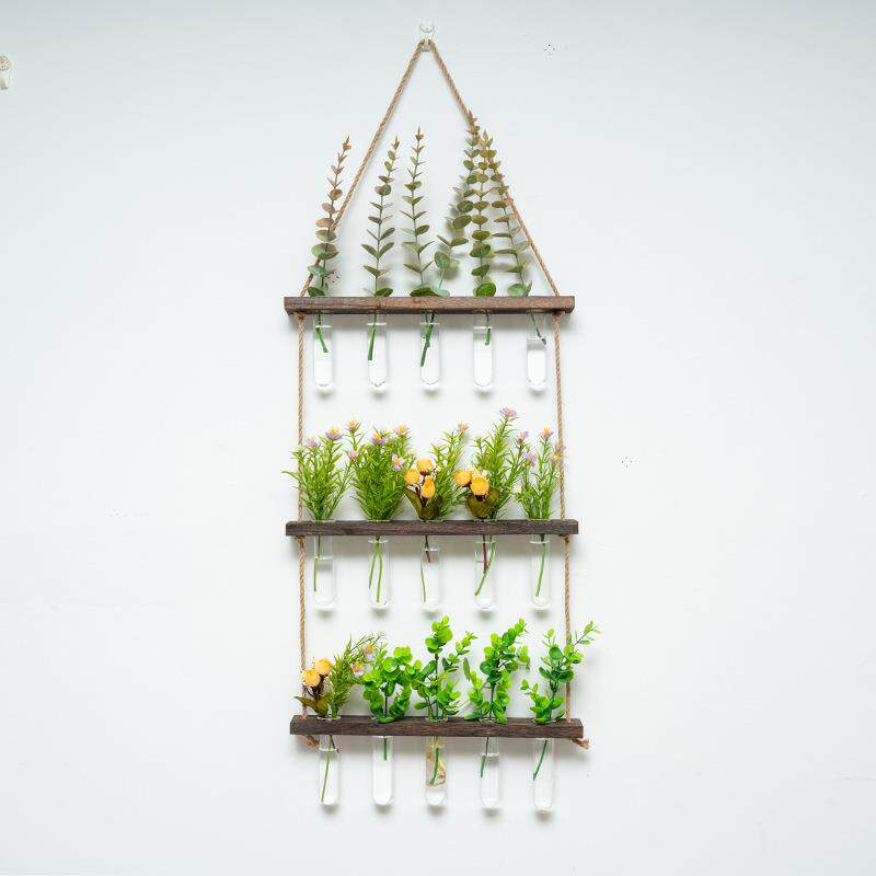 创新壁挂木质水培植物试管墙面悬挂花架水培玻璃容器家庭墙面装饰