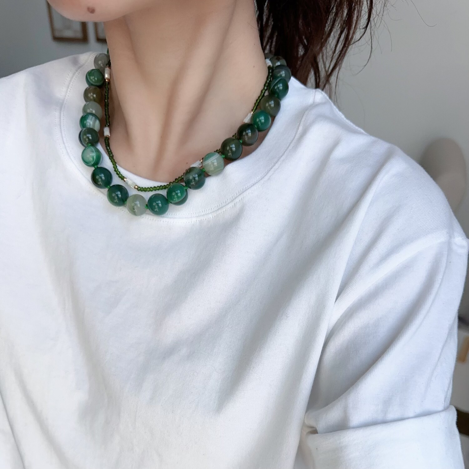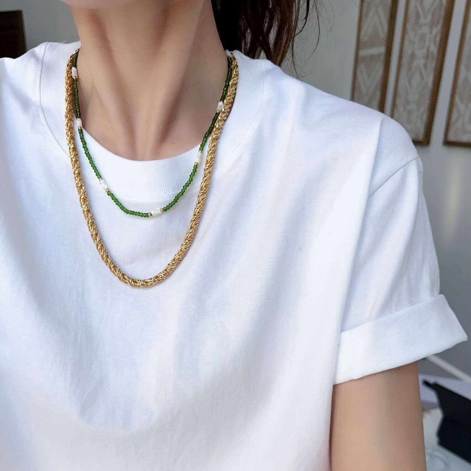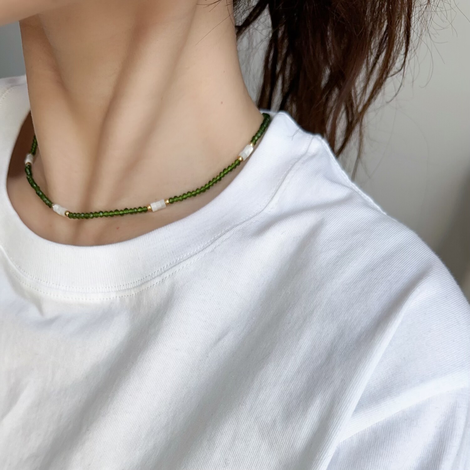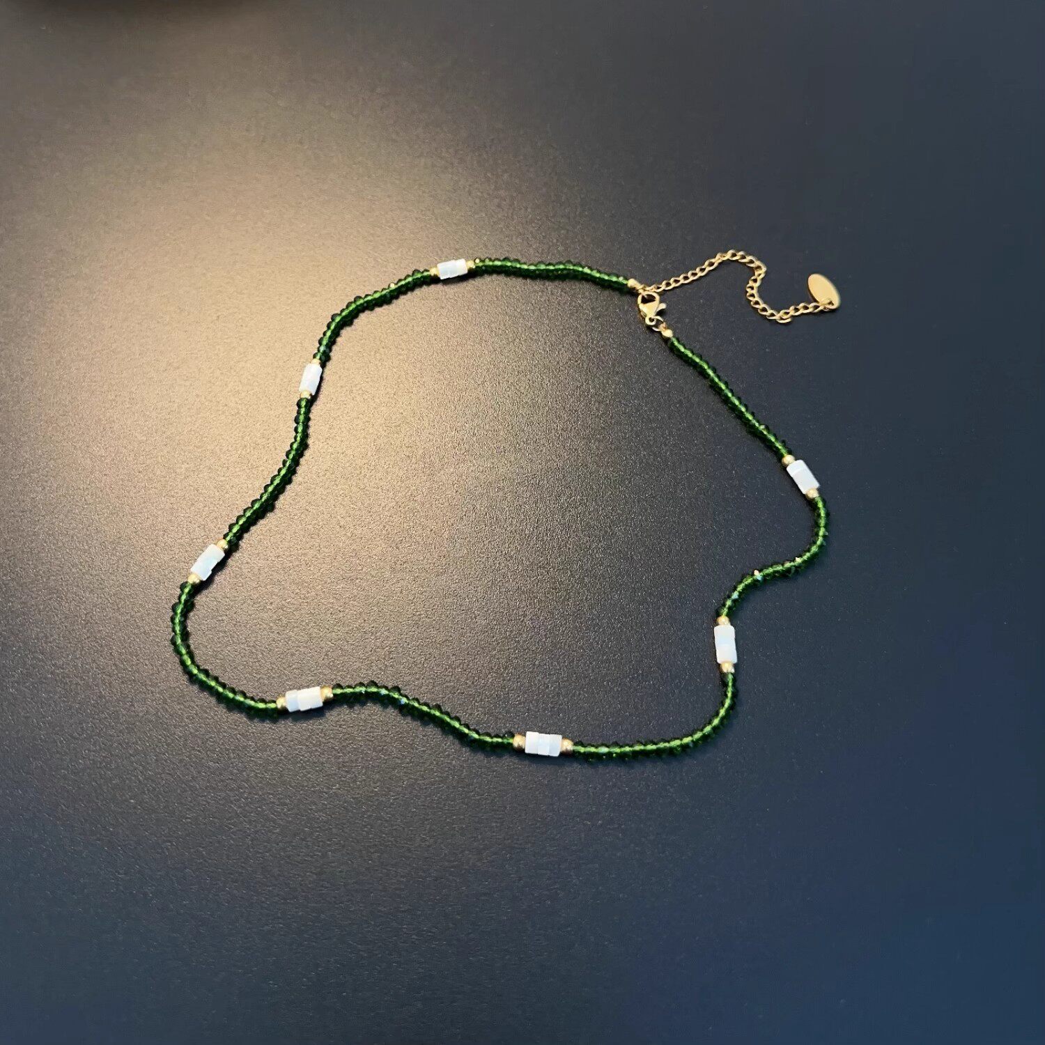 绿色超细串珠闪闪现代复古叠戴项链颈链百搭通勤choker饰水晶饰品