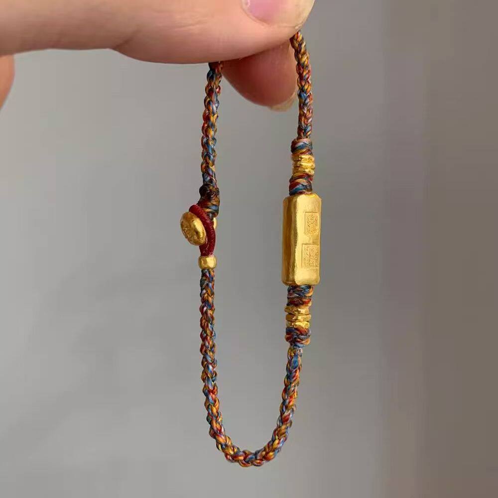 古法藏式招财吉言方块编绳手链复古民族风设计感手工编织彩绳手饰