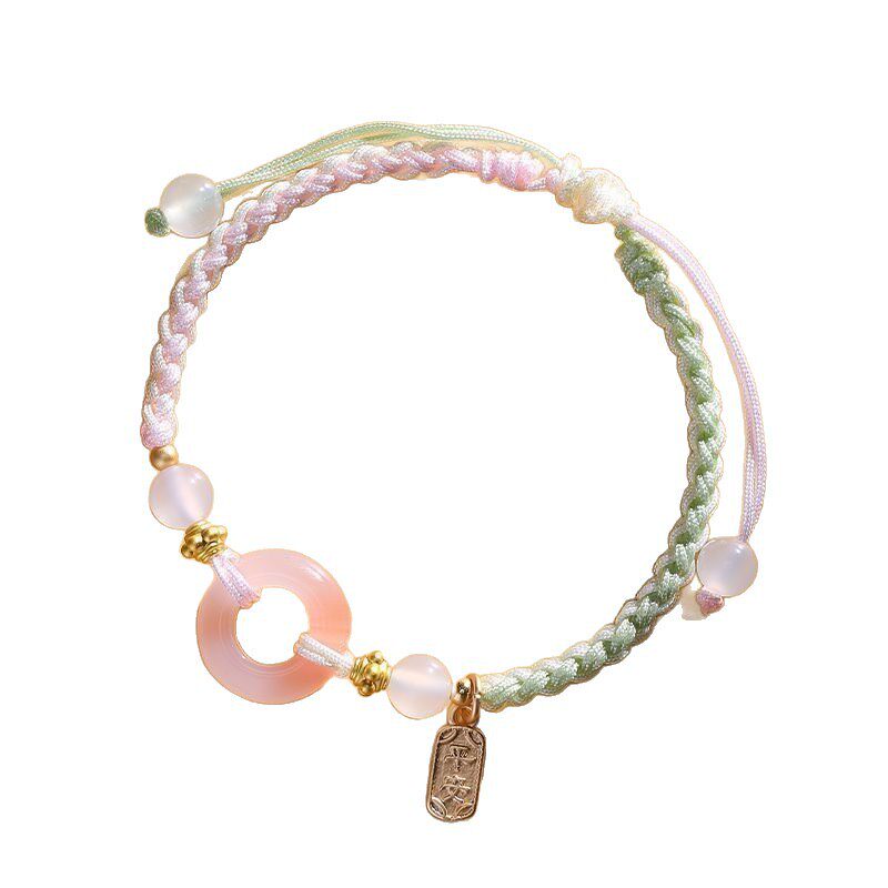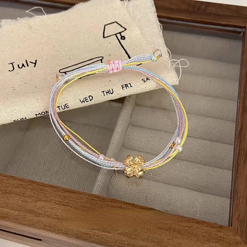 高端小清新绿色手链立体手链文艺风格编制手绳气质女士4条装手串