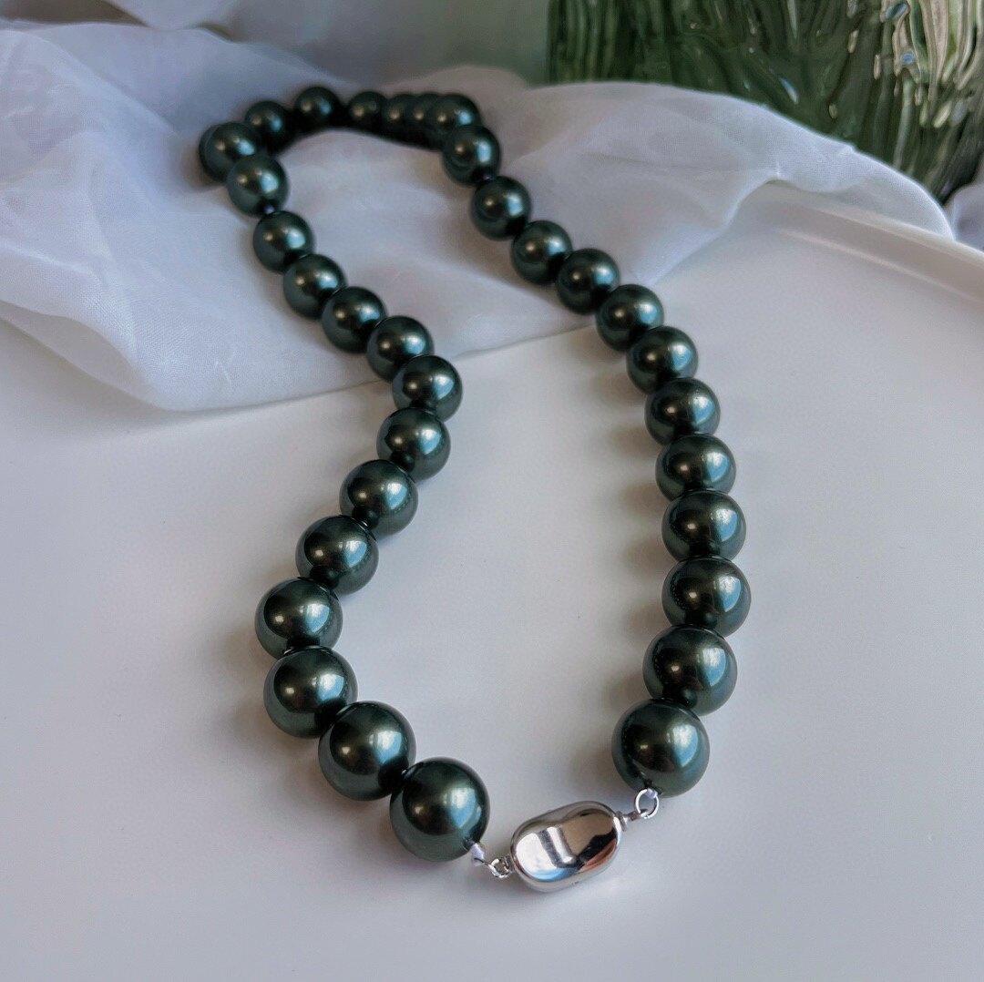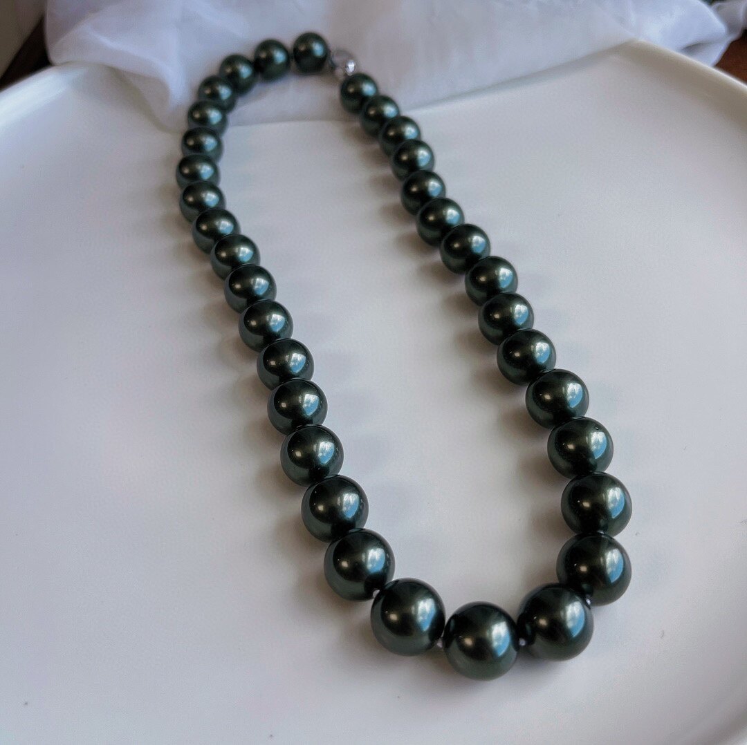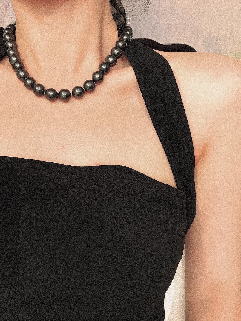 黑高级大溪地色天然深海贝珠珍珠项链高品质 12mm10mm