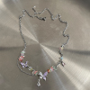 OUKECHUN彩色碎石拼接紫色蝴蝶项链女夏日甜酷y2k辣妹轻奢锁骨链