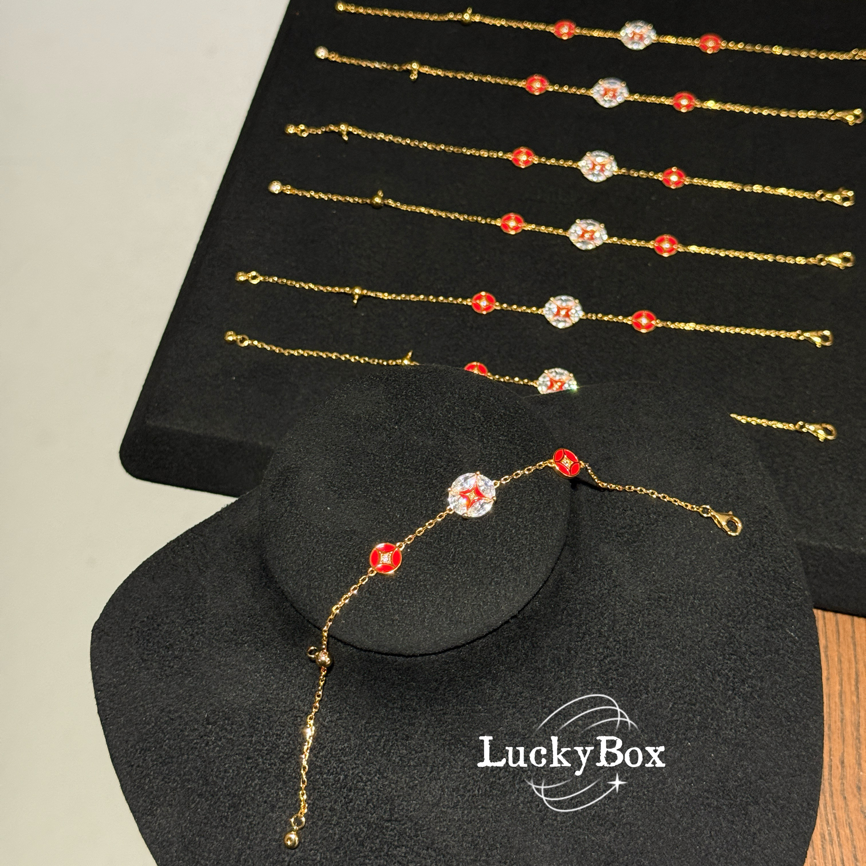「鸿运来财」珐琅镶钻钱币s925银镀18k金手链小众设计轻奢高级感
