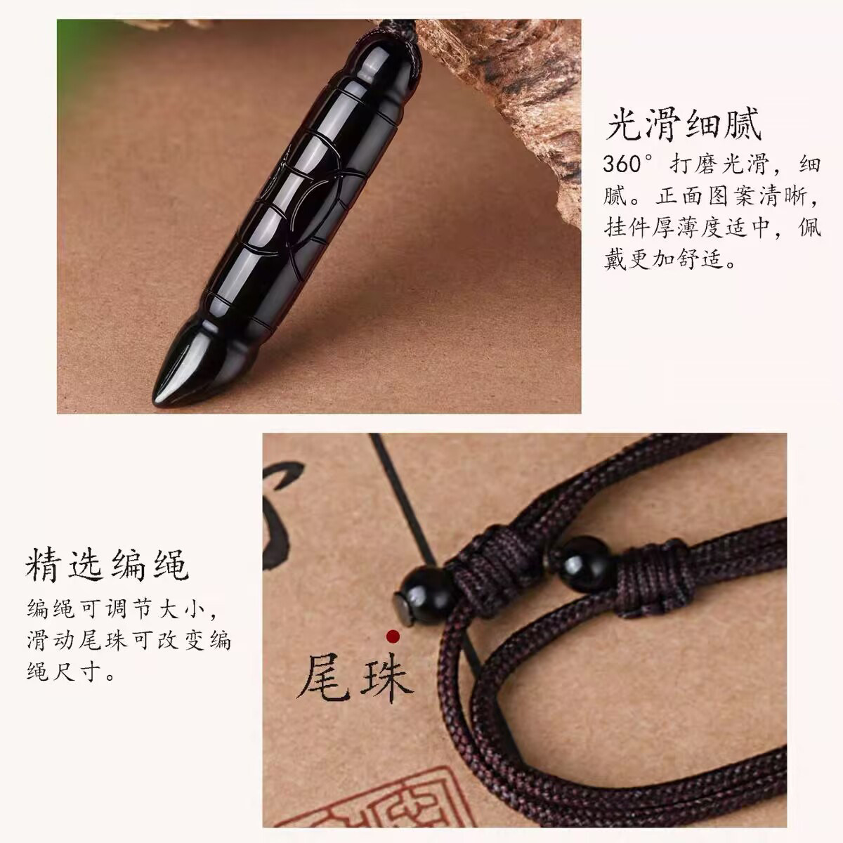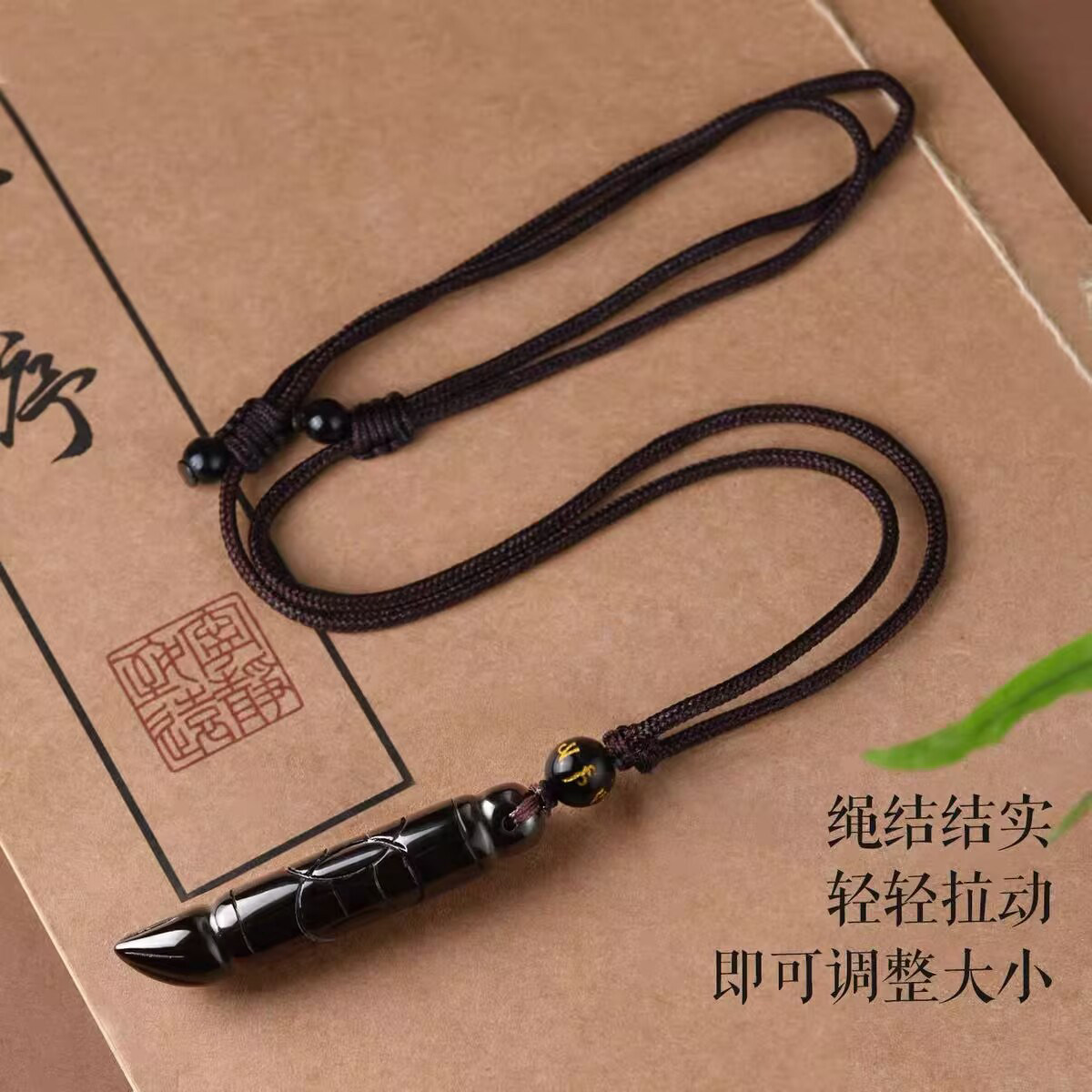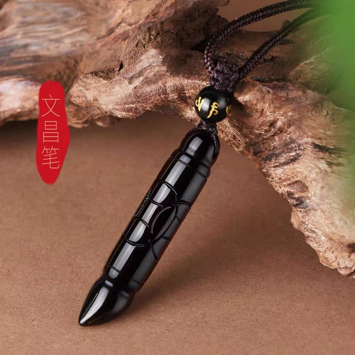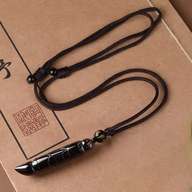 天然黑曜石文昌笔金榜题名状元笔吊坠男女项链挂件情侣水晶饰品