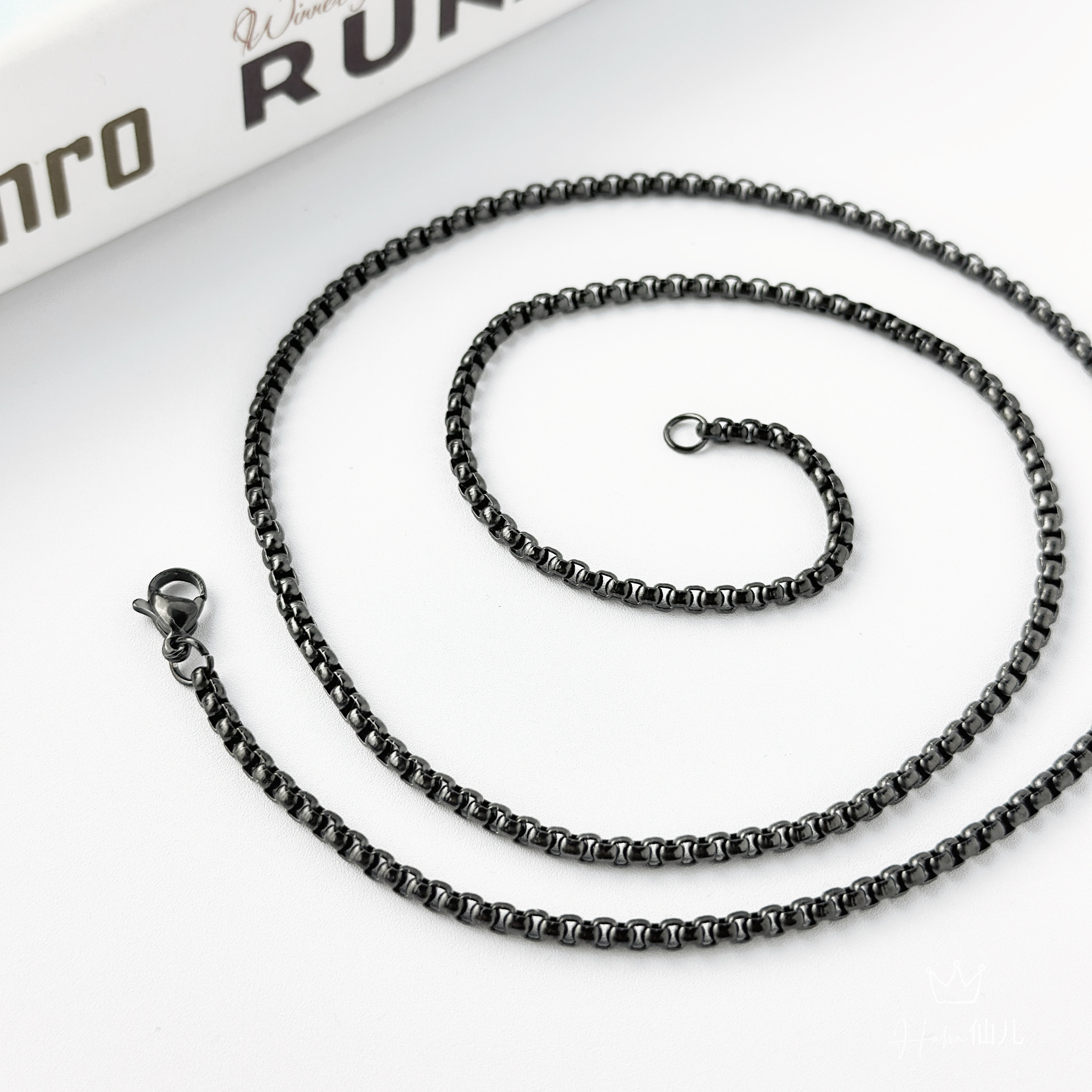 haha仙儿黑色钛钢男士项链无吊坠素链龙骨链个性潮男简约长款链子