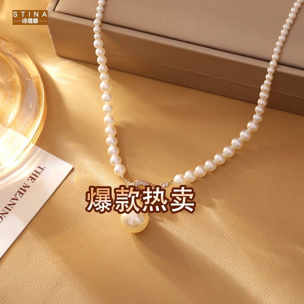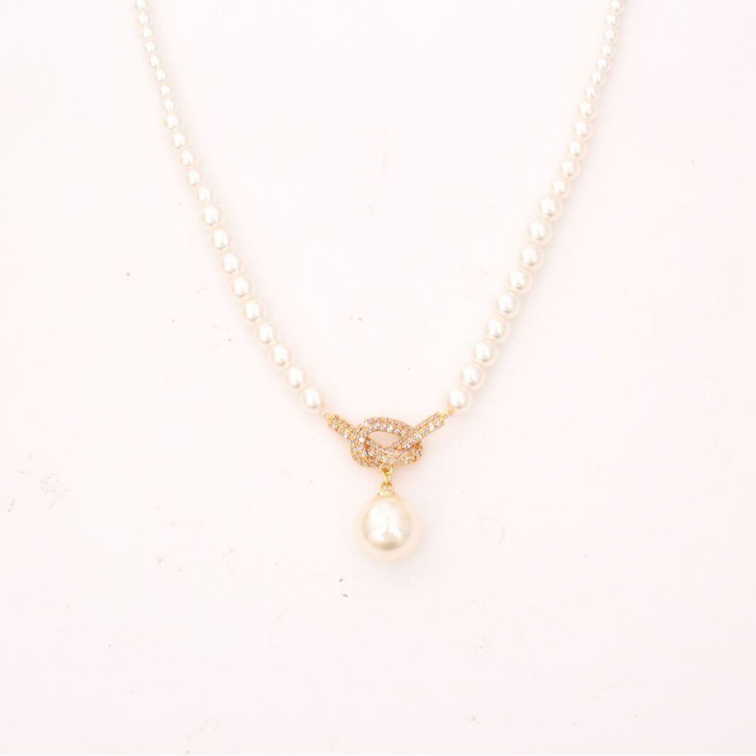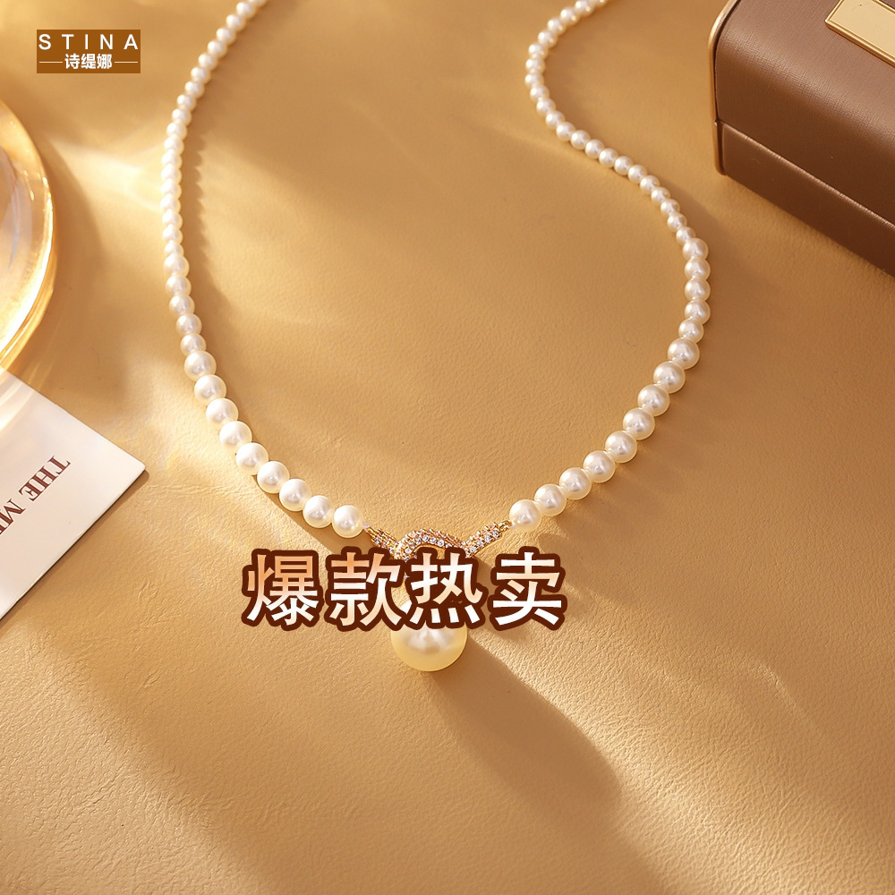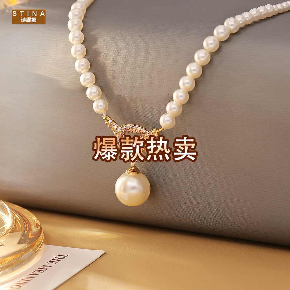 STINA高级感微镶锆石打结珍珠项链韩版名媛风优雅气质百搭锁骨链