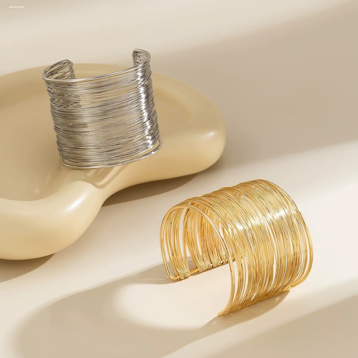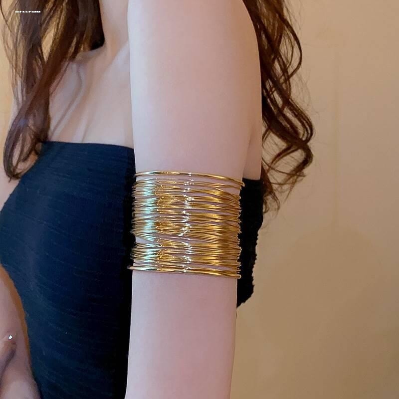 欧美多层铁线开口手镯女小众夸张设计感手环个性辣妹冷淡风臂环