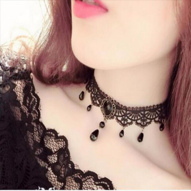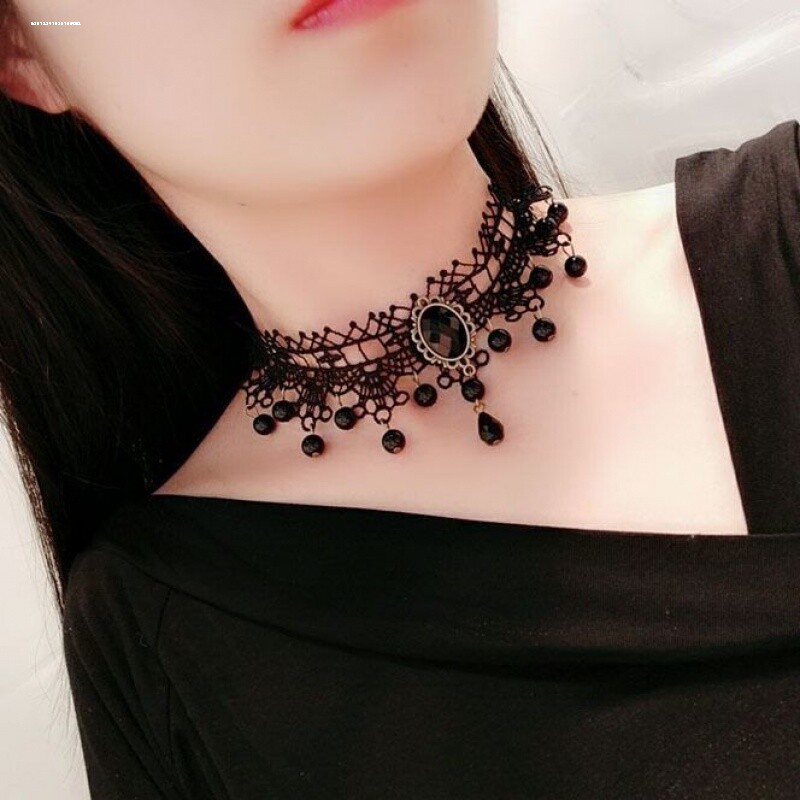 百搭锁骨链项链学生脖链饰品吊坠黑色蕾丝颈脖链女性感隐形颈链